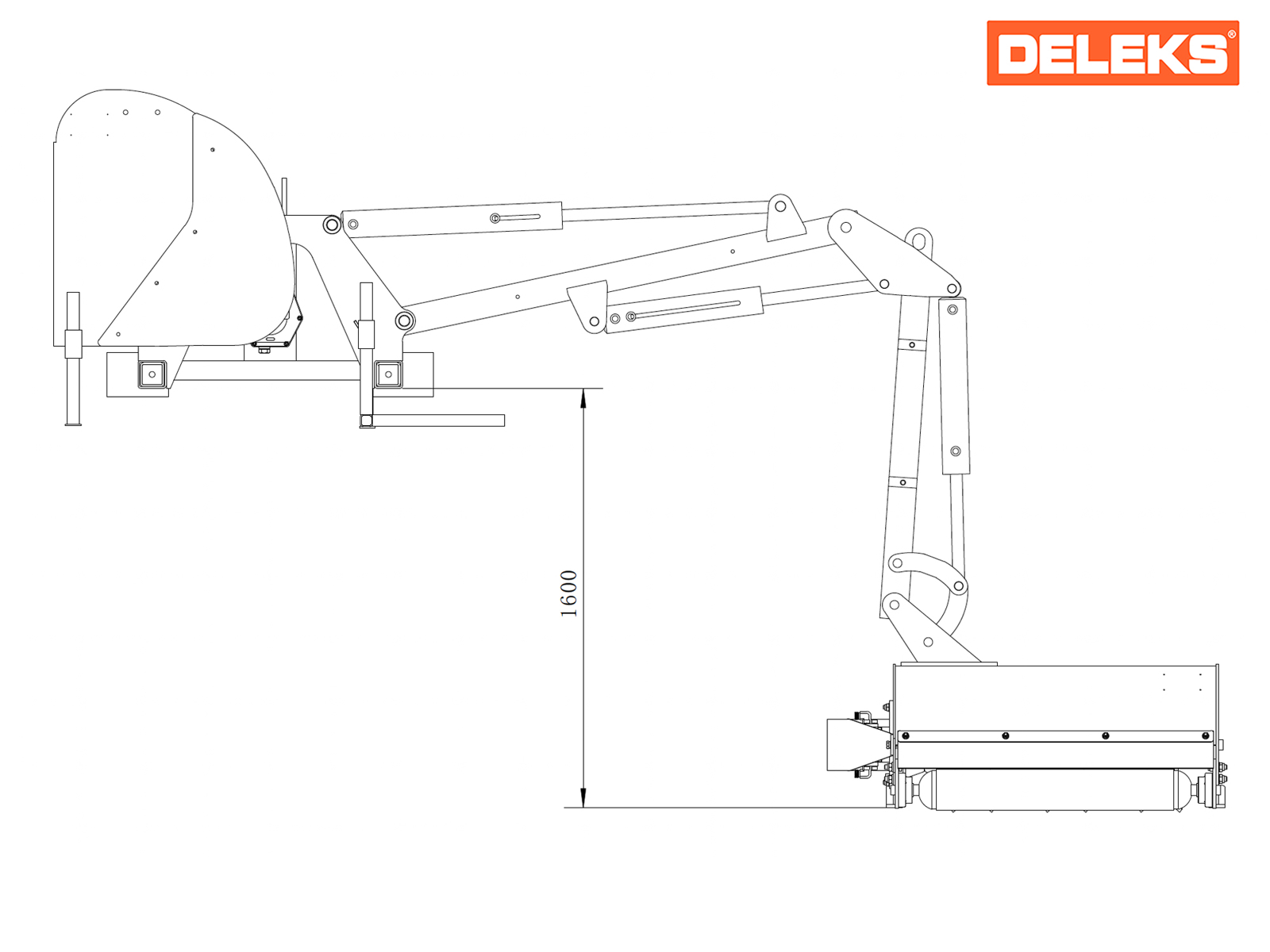 Hydraulischer Heckenschneider-Ausleger - DELEKS® MERLO, kann einen Mulchkopf mit einer Schnittlänge von 80-100-110 cm oder einen Mähbalken von 130-160 oder 180 cm montieren - Joystick.