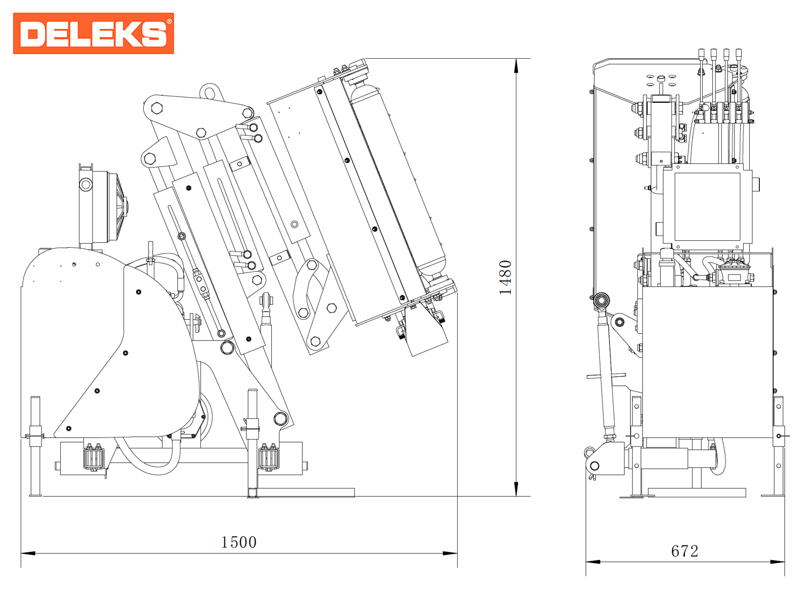 Über die Spur hinaus und in geneigter Arbeitsstellung säubert der Deleks Böschungsmulcher Straßenränder und Gräben, bei Vertikaler Arbeitsstellung hingegen stutzt er Hecken und Böschungen.