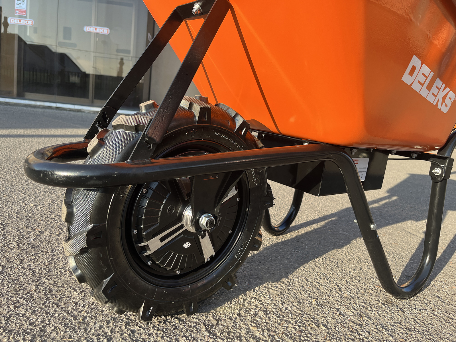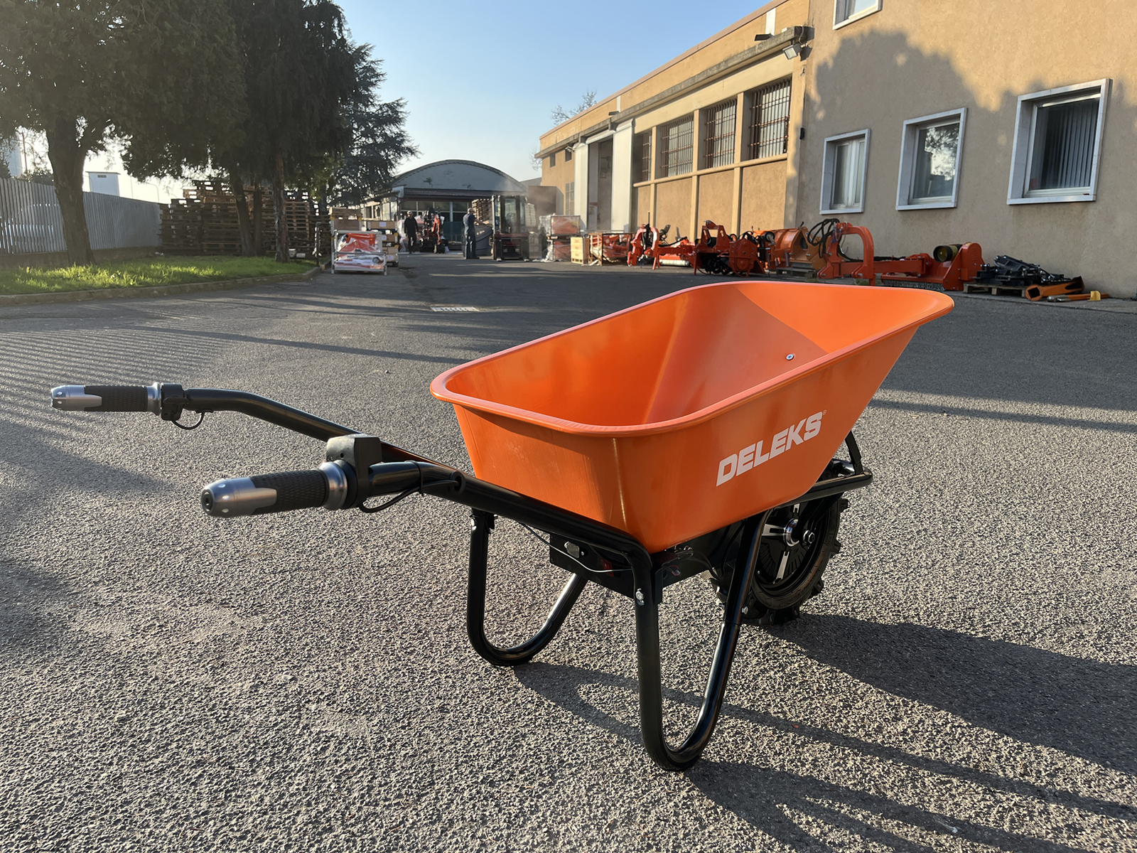 Elektrische Schubkarre DELEKS® XE150, Betriebsdauer 8 Stunden, Metallgehäuse, Tragfähigkeit 150 kg.