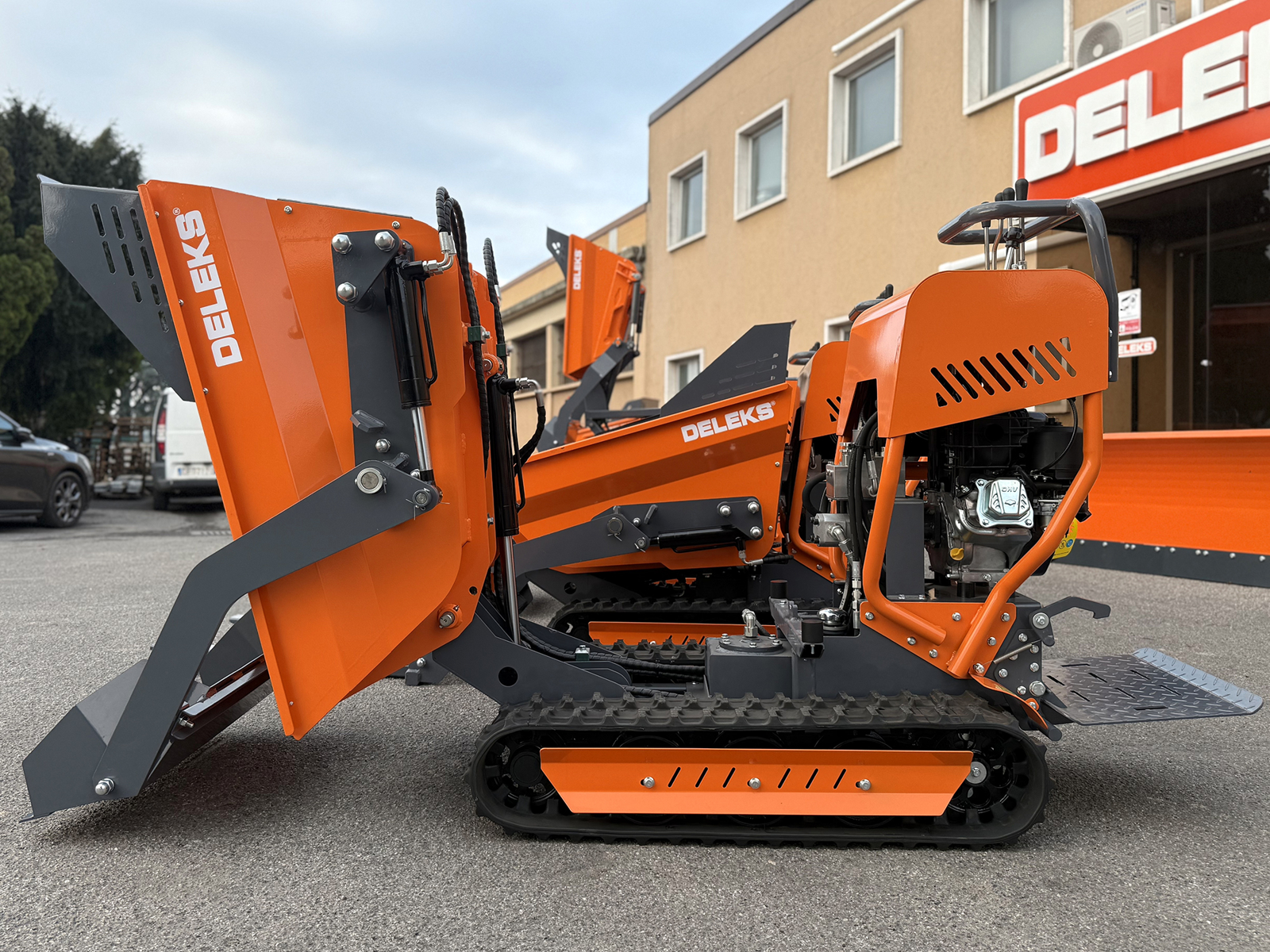 DELEKS® V3000 Selbstladender Minidumper auf Raupen, hydrostatisches Getriebe, Bedienerplattform, Briggs&Stratton Motor, Elektrostart.