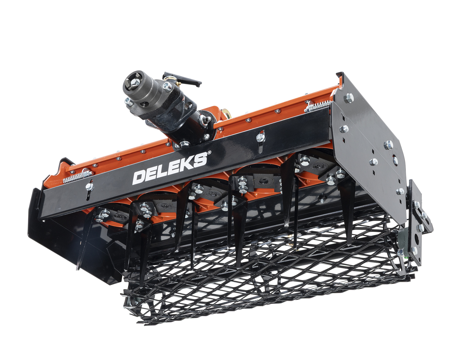 Erpice rotante con rullo a rete DELEKS® per motocoltivatore, attacco rapido (maschio) incluso. Compatibile con motocoltivatori BCS, Ferrari e Pasquali.