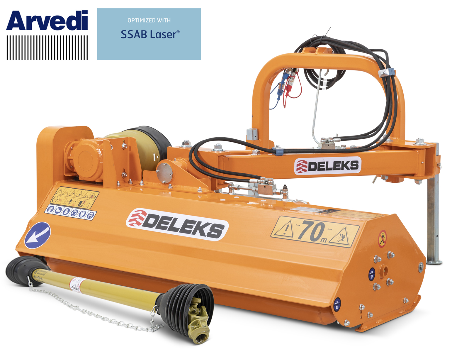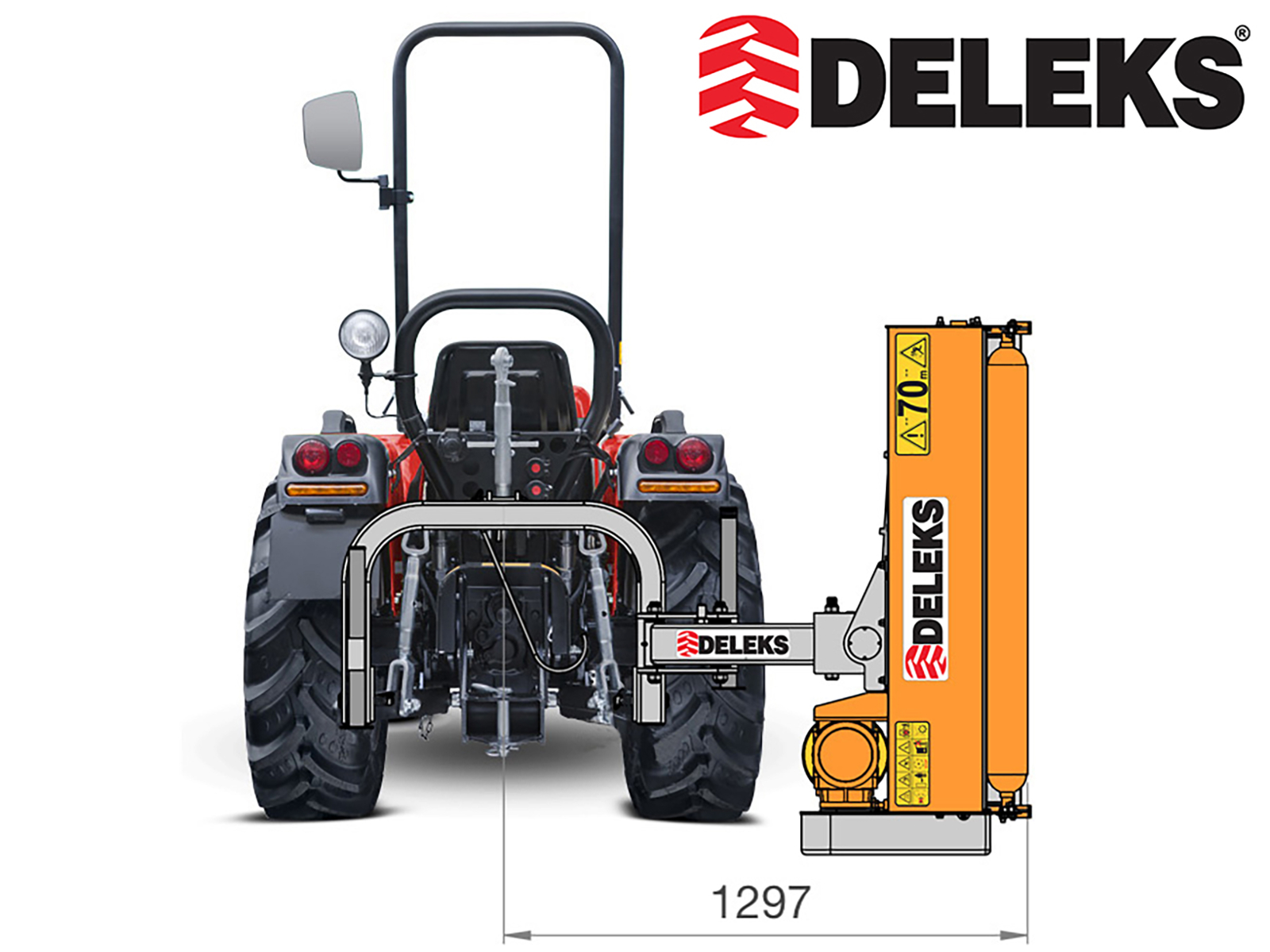 Über die Spur hinaus und in geneigter Arbeitsstellung säubert der Deleks Böschungsmulcher Straßenränder und Gräben, bei Vertikaler Arbeitsstellung hingegen stutzt er Hecken und Böschungen.