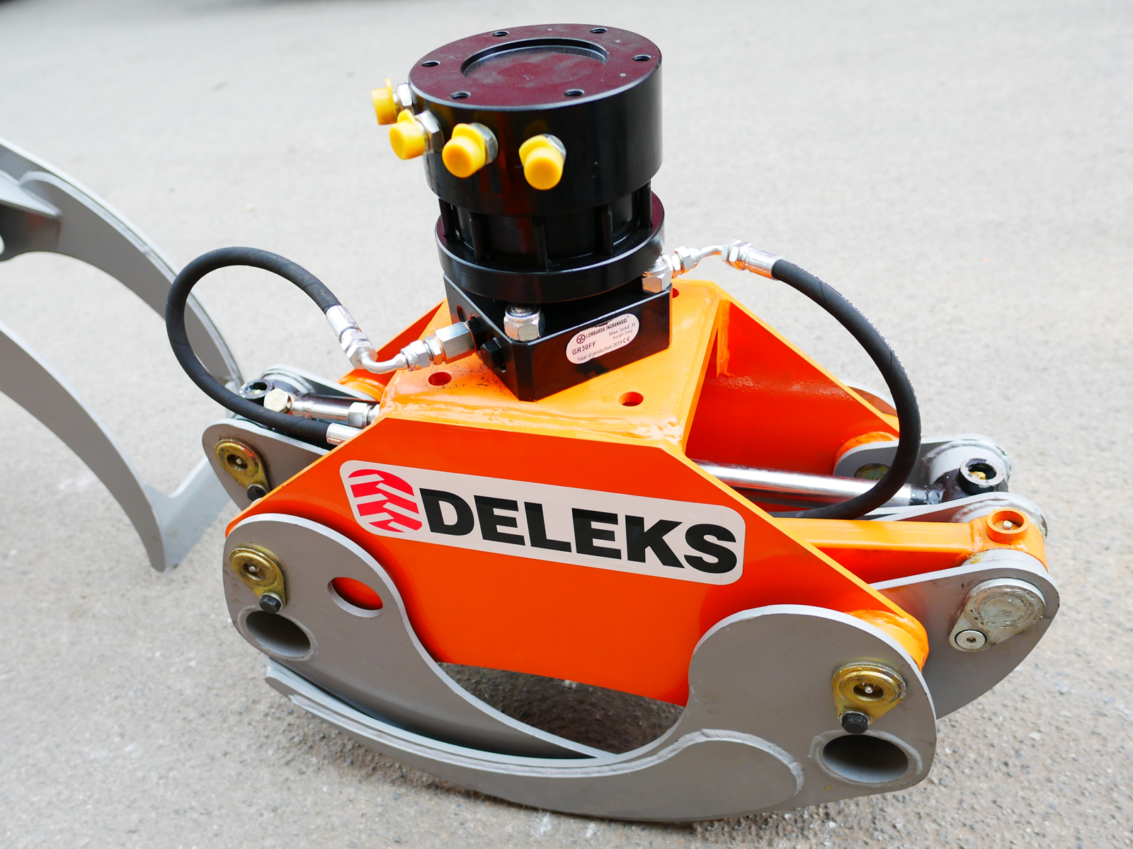 Pour fonctionner, le rotateur necessite 4 sorties hydrauliques. Cependant, DELEKS® peut aussi fournir une soupape de réduction afin de réduire la quantité de sortie nécessaire à deux. Conforme CE. Garantie 2 ans.