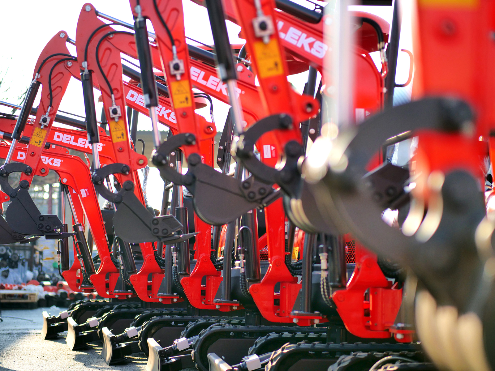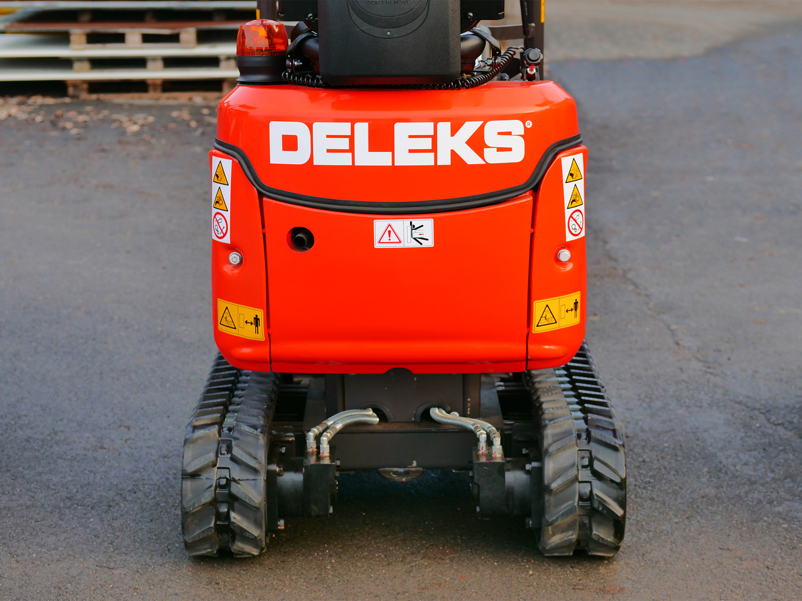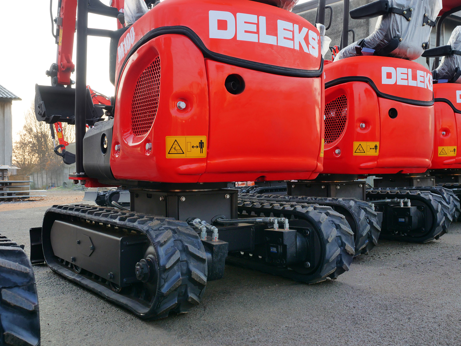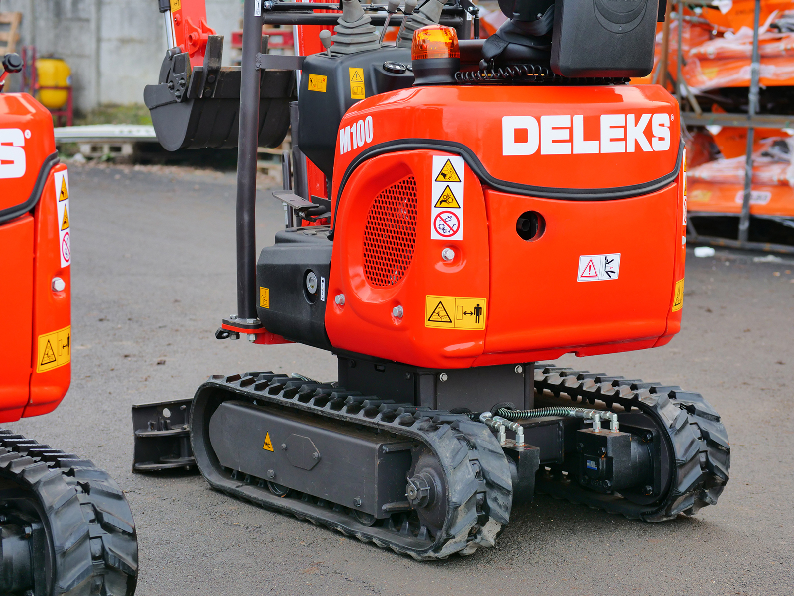 La mini-pelle compacte DELEKS® M100 (1 tonne) est équipée d’un moteur diesel Kubota D722 à 3 cylindres, d’un châssis à voie variable et d’un bras déportable.