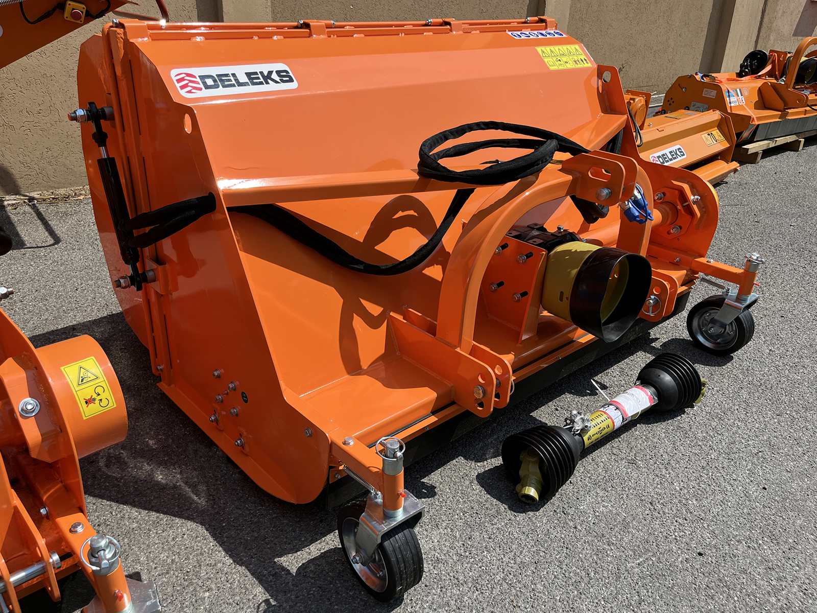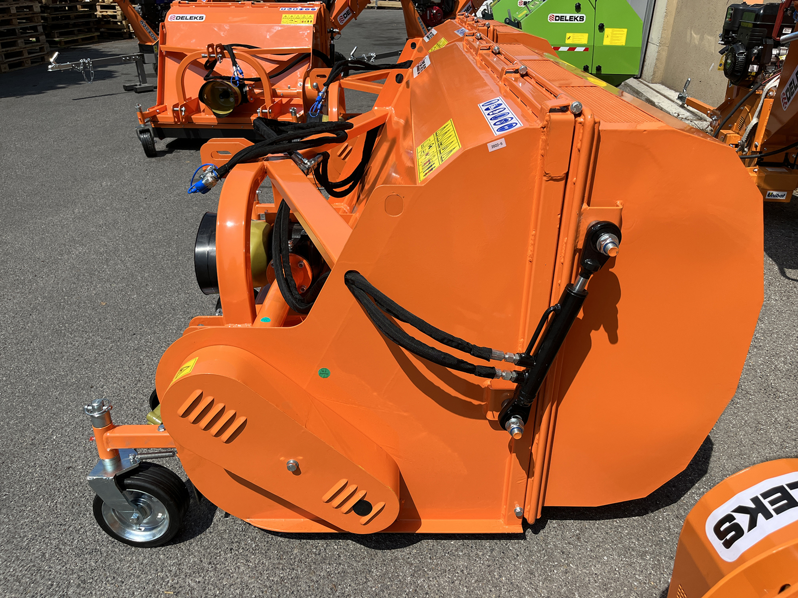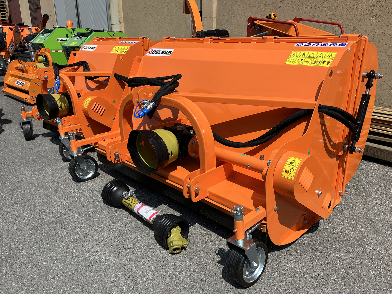 DELEKS® PANDA-160 Profi-Mulcher mit Grasfangkorb / Auffangbehälter / Sammelwanne hydrl. – geeignet zum Mähen von Sportplätzen oder Weinbergen. Gelenkwelle mit Sicherheitsbolzen.