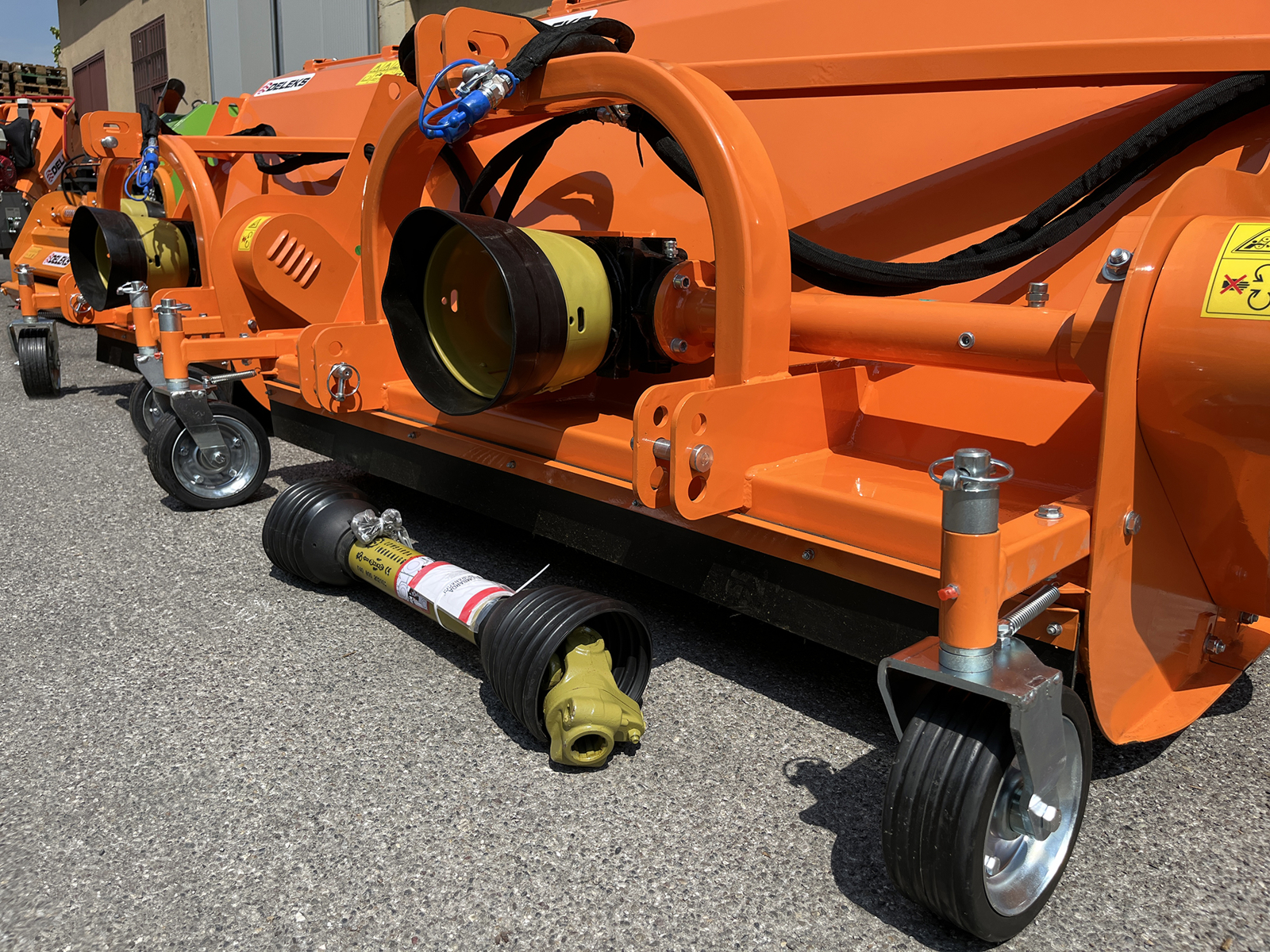 SCHLIESSENDELEKS® PANDA-160 Profi-Mulcher mit Grasfangkorb / Auffangbehälter / Sammelwanne hydrl. – geeignet zum Mähen von Sportplätzen oder Weinbergen. Gelenkwelle mit Sicherheitsbolzen.