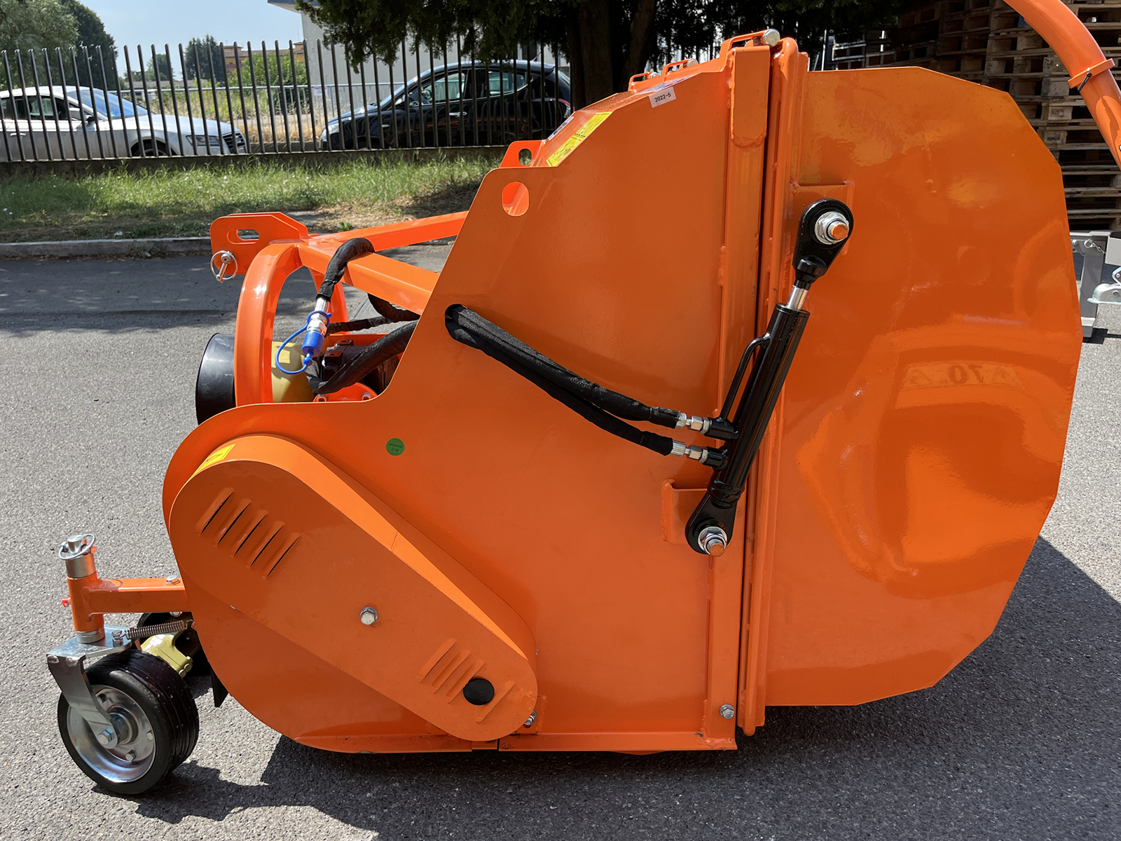 SCHLIESSENDELEKS® PANDA-120 Profi-Mulcher mit Grasfangkorb / Auffangbehälter / Sammelwanne hydrl. – geeignet zum Mähen von Sportplätzen oder Weinbergen. Gelenkwelle mit Sicherheitsbolzen.
