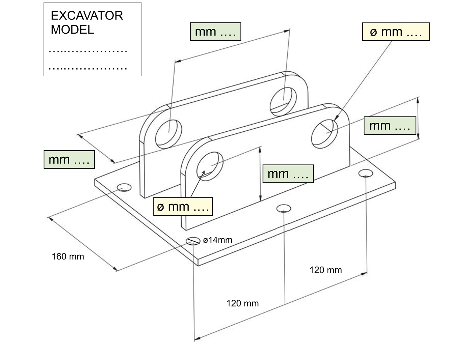 Anpassbare Aufnahme für den Hydraulischen Mulchkopf der ARM - ARJ-Serie.