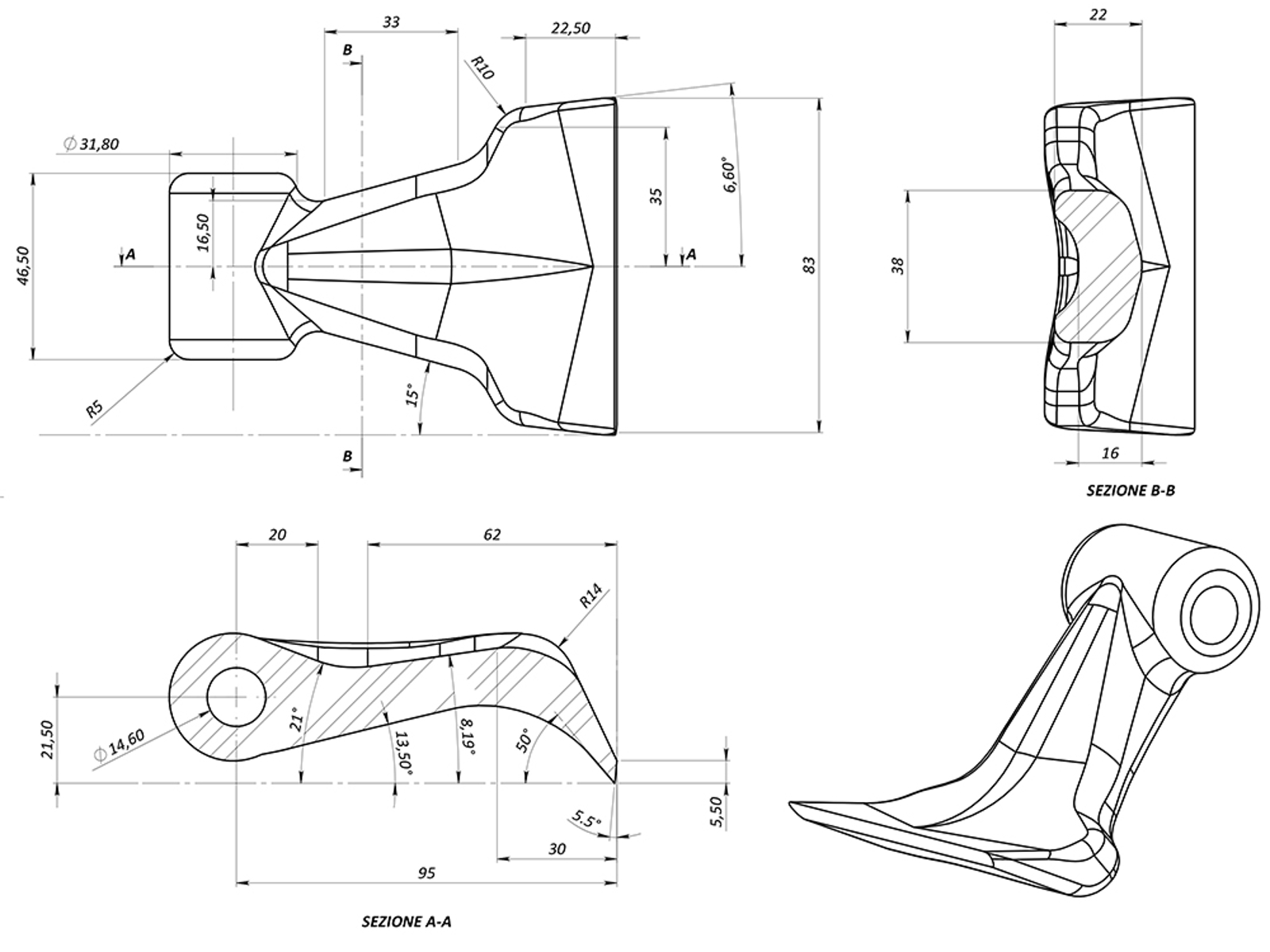 Marteaux forgés de 820g pour broyer une végétation de 4-5 cm d´épaisseur.