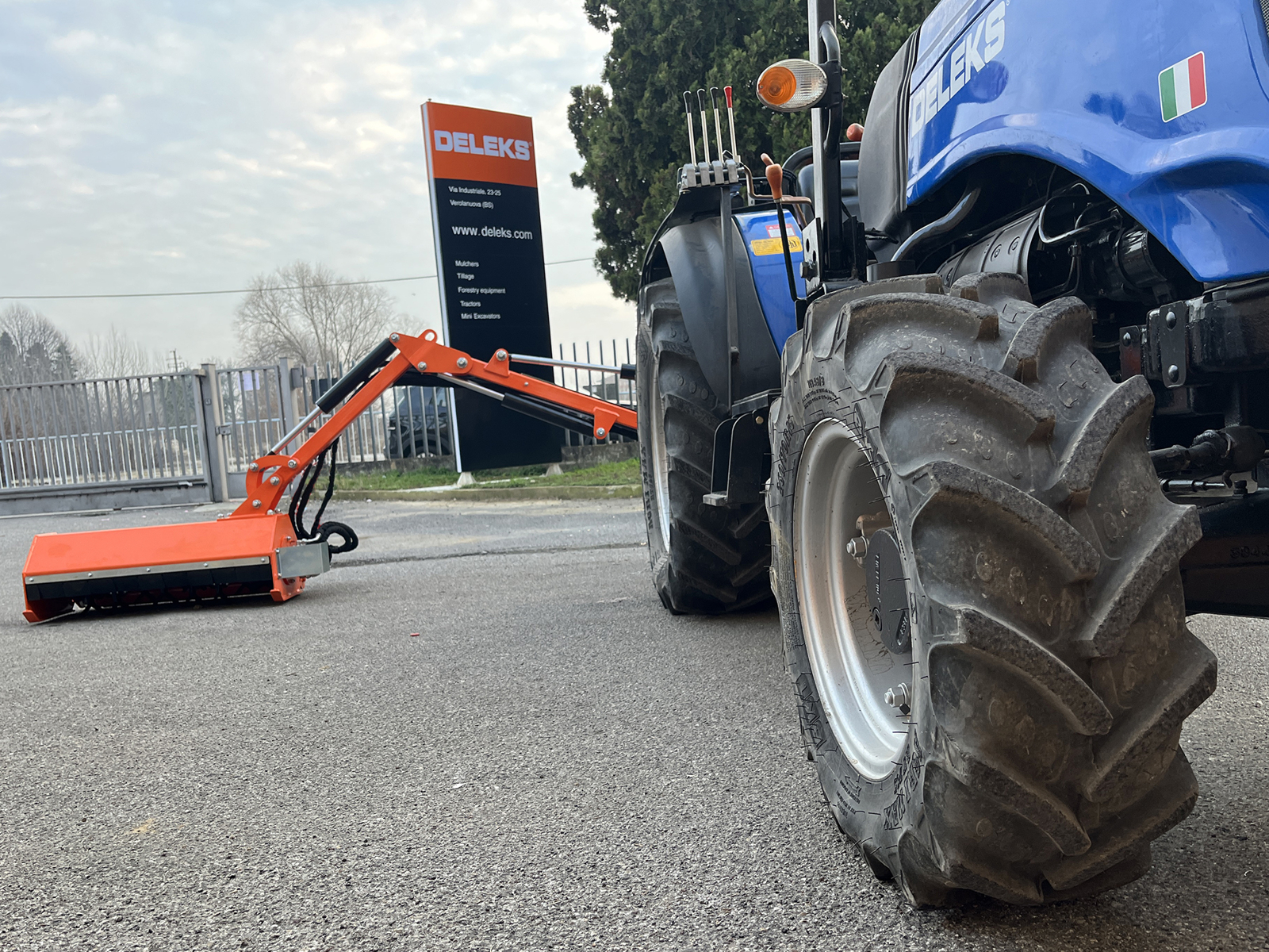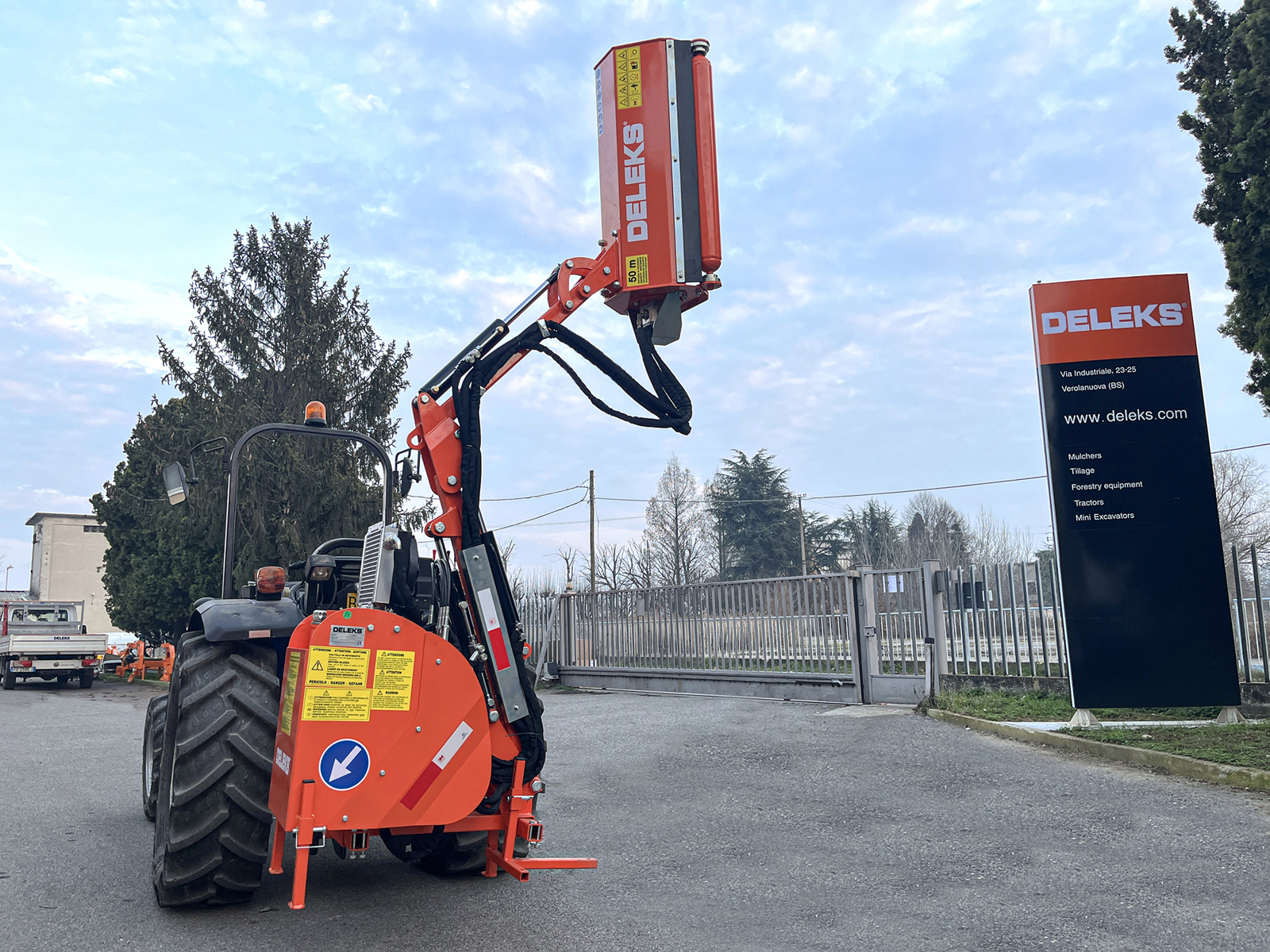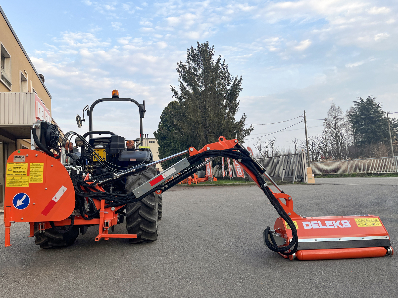 Débroussailleuse à bras hydraulique - DELEKS® MERLO, peut monter une tête de coupe de 80-100-110cm de coupe, ou une barre de 130-160 ou 180cm, Joystick. Broyeur latéral.