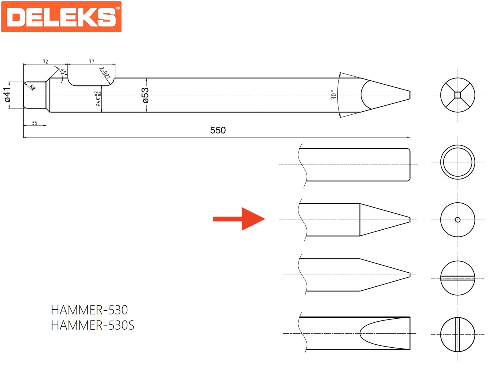 DELEKS® Outil conique pour marteau hydraulique.