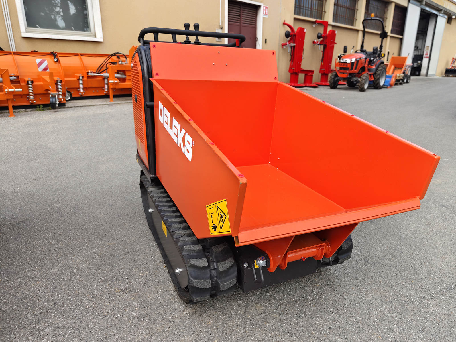 Le DELEKS® M5000-BS est un mini dumper chenillé de niveau professionnel, équipé d’une transmission hydrostatique, conçu pour offrir un contrôle précis, une grande fiabilité et un excellent confort d’utilisation lors de travaux intensifs.