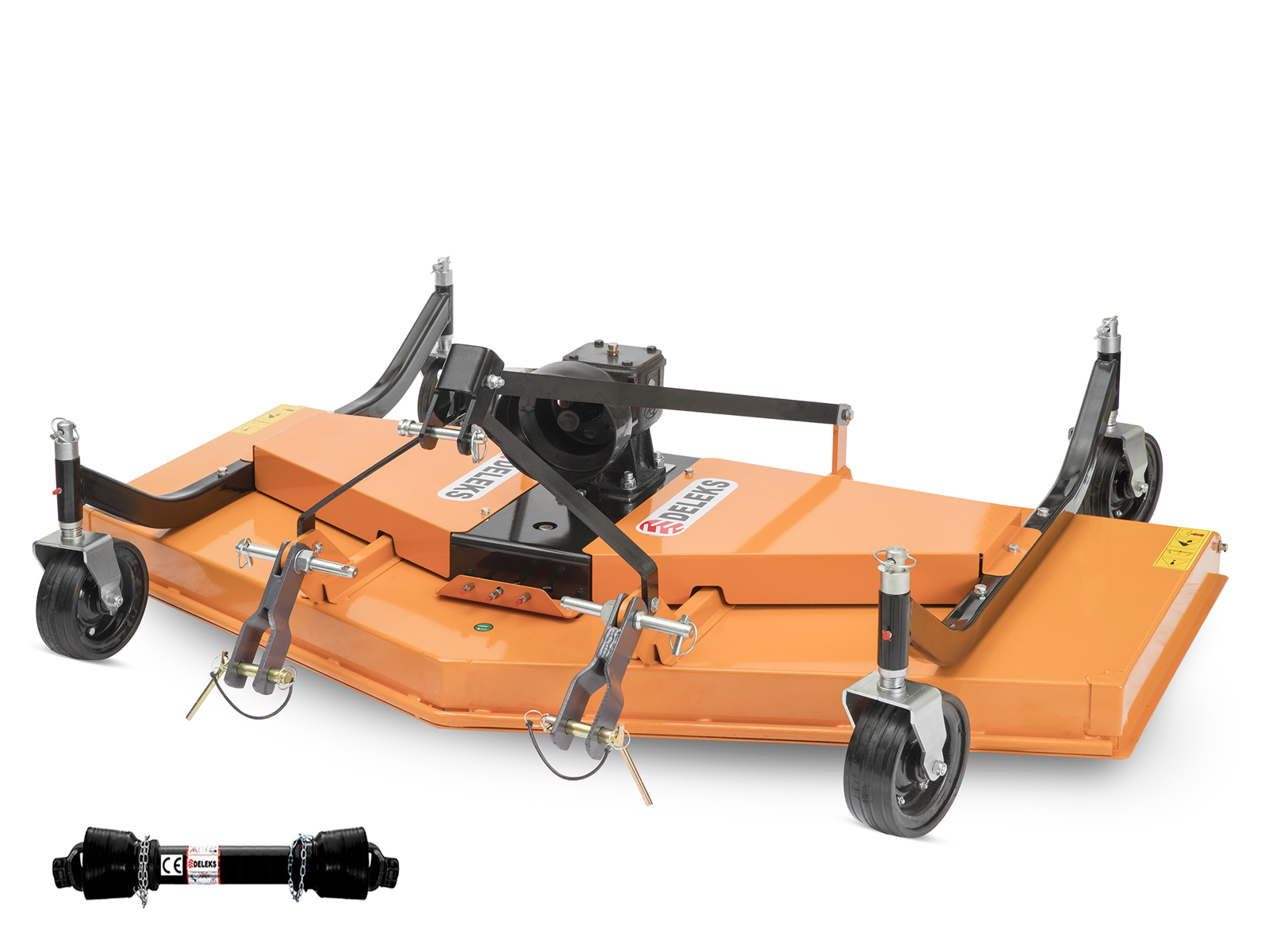 Tondeuse de finition 3 lames DELEKS pour tracteur de type Kubota, Iseki, Yanmar - Largeur de travail: 150cm - Livré avec cardan CE à roue libre
