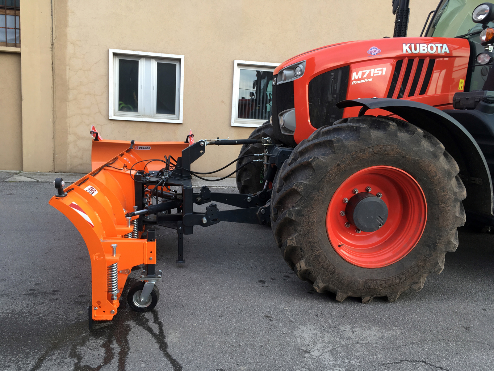 Schweres Schneeräumschild mit Dreipunktaufnahme der Kategorie 2 – 3, für Traktoren mit Fronthydraulik von 90 bis 130 PS. Geeignet für alle Traktoren wie z. Bsp. Landini, Kubota, Massey Ferguson, John Deere, Fendt, Steyr, Same, Fiat, Claas, Deutz-Fahr, uvm. Hydraulische Steuerung bestehend aus 2 Hydraulikzylindern und 2 Hydraulikschläuchen 1,5 m, zwei Stützfüsse, Begrenzungsleuchten. Mit CE – Zertifizierung und 2 Jahre Garantie.