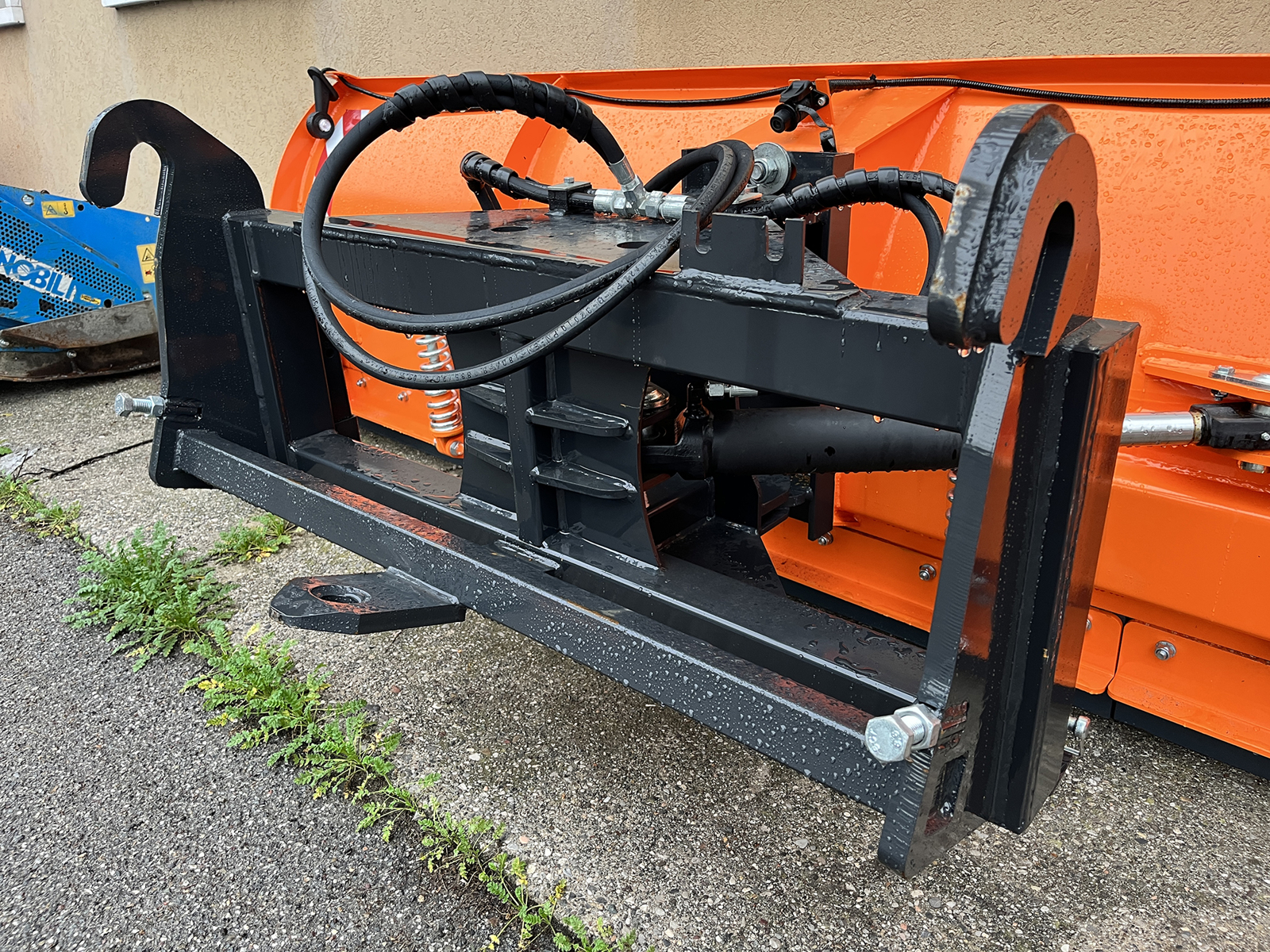 L´orientation droite/gauche se fait avec 2 vérins hydraulique et 2 flexibles de 1,6 mètres de long.