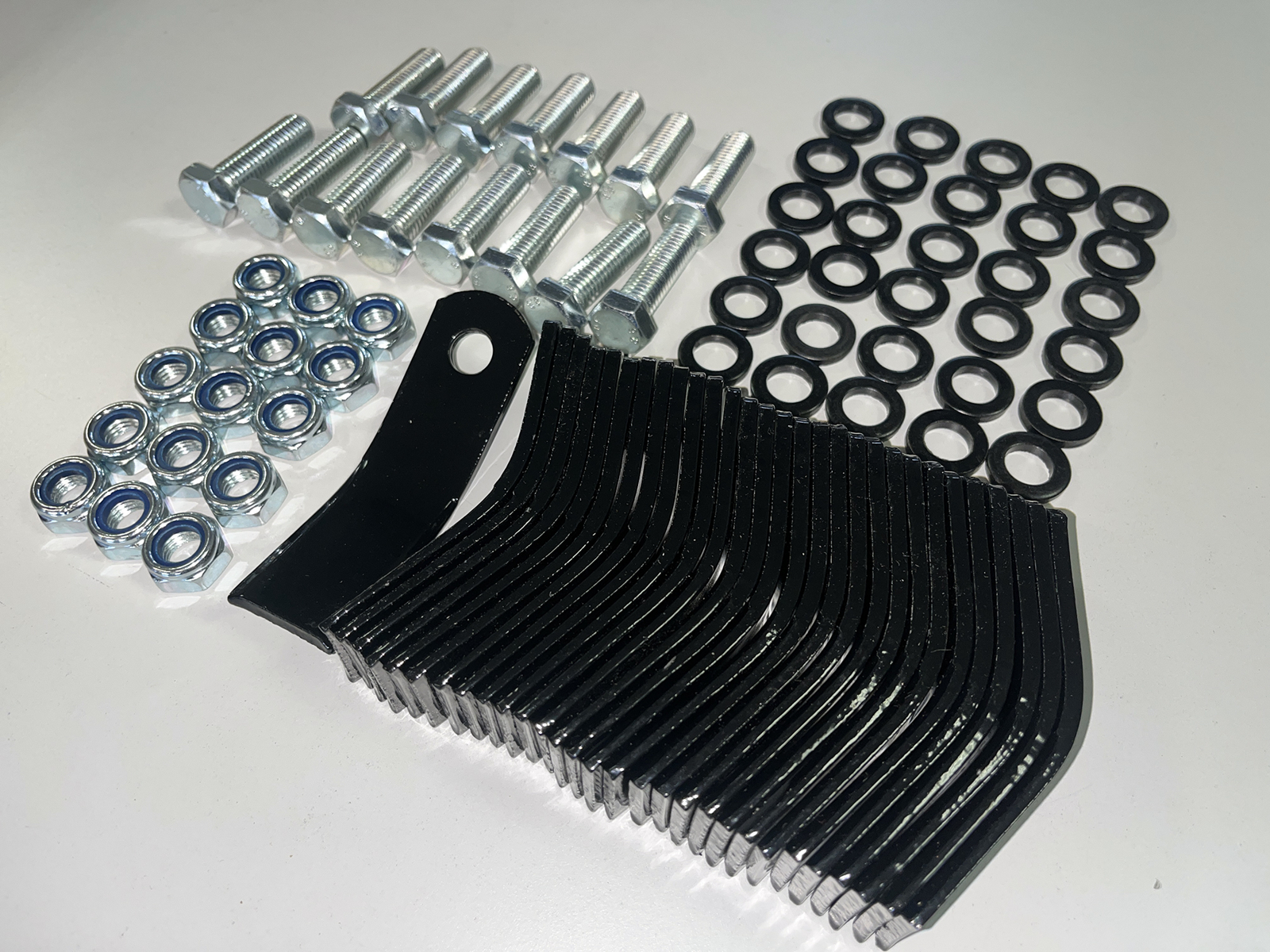 Kit complet pour broyeur ZFM60 composé de 30 lames, 30 clips de fixation, 15 écrous M12 et 15 vis M12×40.