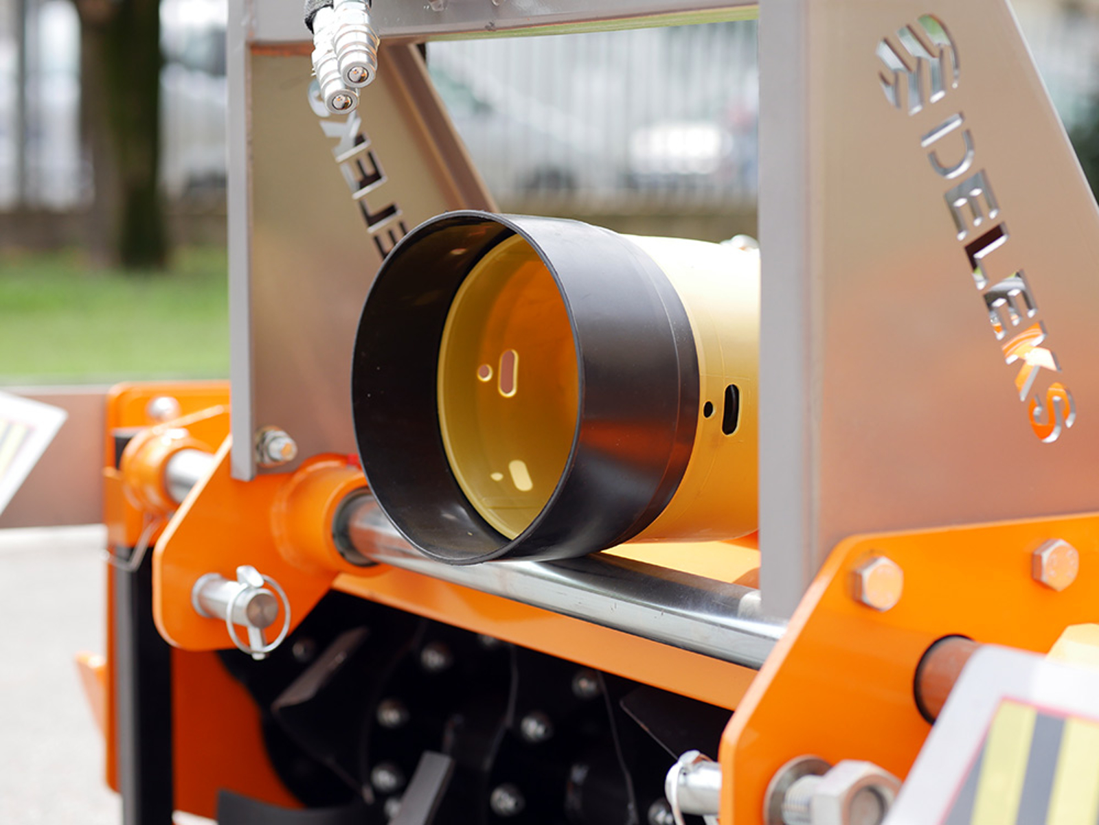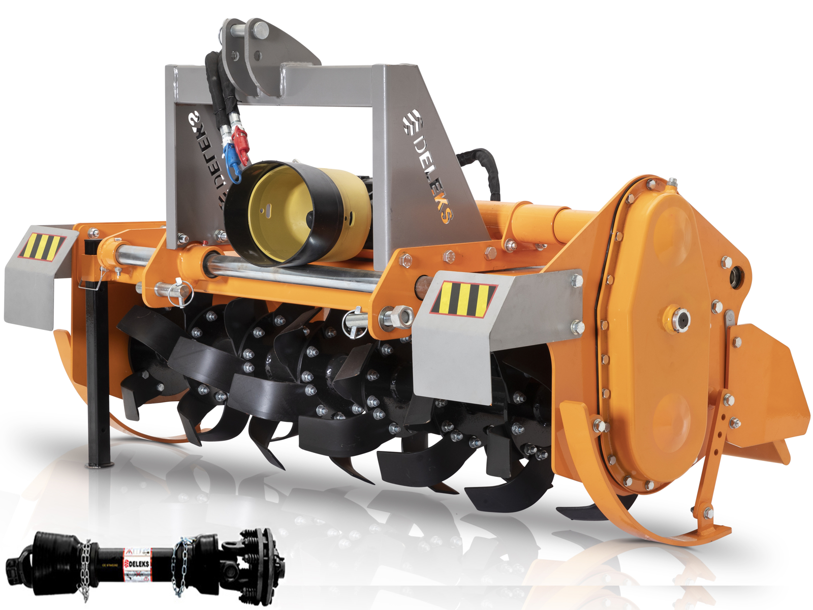 Rotovator DELEKS pour tracteurs 50-70cv, série lourde - Poids: 400kg - Déport hydraulique 330mm - Largeur de travail: 180cm - Livré avec cardan homologué CE avec friction.