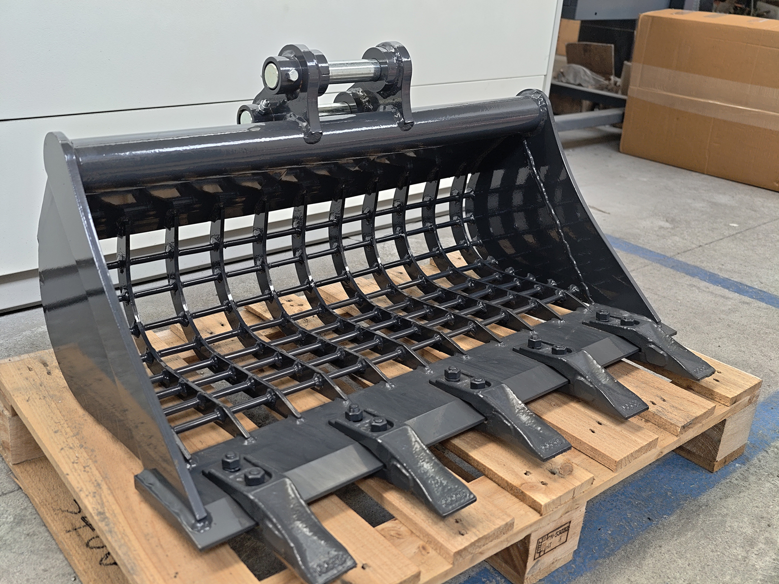 Godet râteau (type skeleton / cribleur) conçu pour les mini-pelles S180 et machines avec attache équivalente. Idéal pour les opérations de tri et de ratissage : entretien de cours d’eau, séparation des déchets de démolition, préparation du sol avant semis et travaux de paysagisme professionnel.