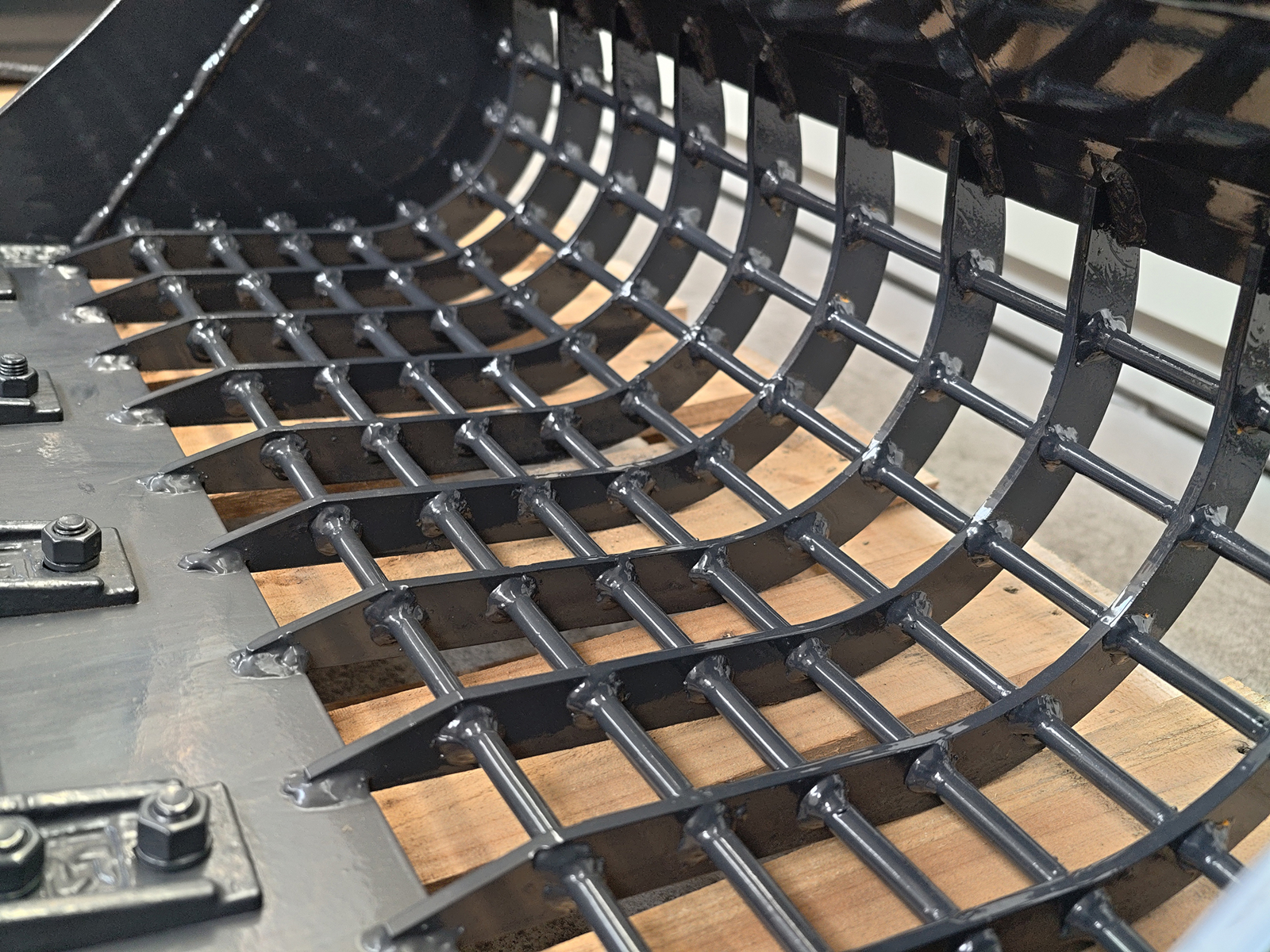 La structure grillagée renforcée avec dents verticales offre une excellente capacité de criblage, permettant la séparation rapide des pierres, briques et matériaux grossiers du sol fin. Cela réduit l’évacuation de matériaux humides et favorise la réutilisation des fractions sélectionnées.
