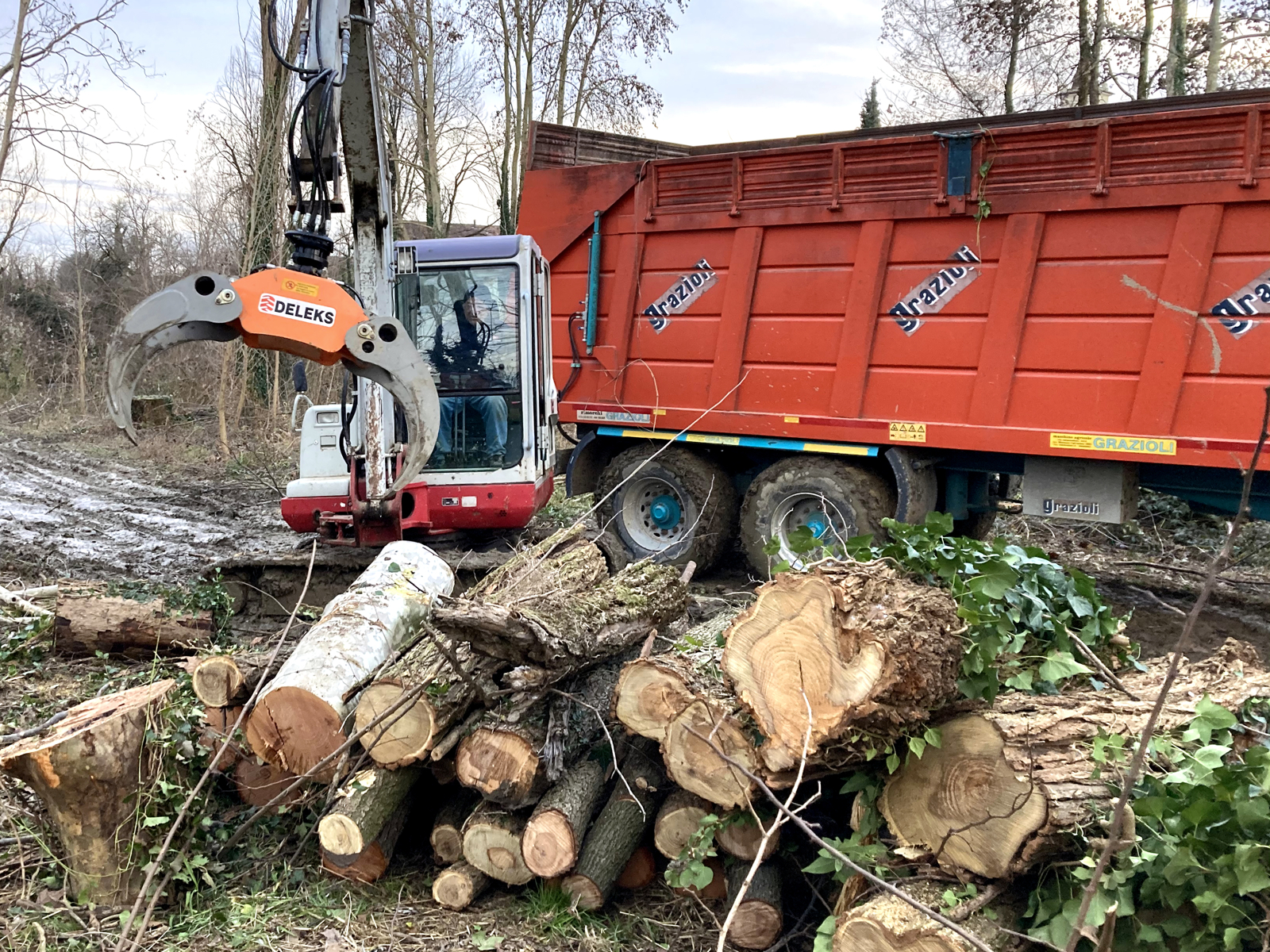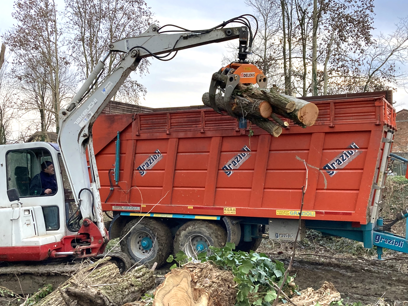 Zum Laden und Trasnportieren von Baumstämmen und Strauchwerk.