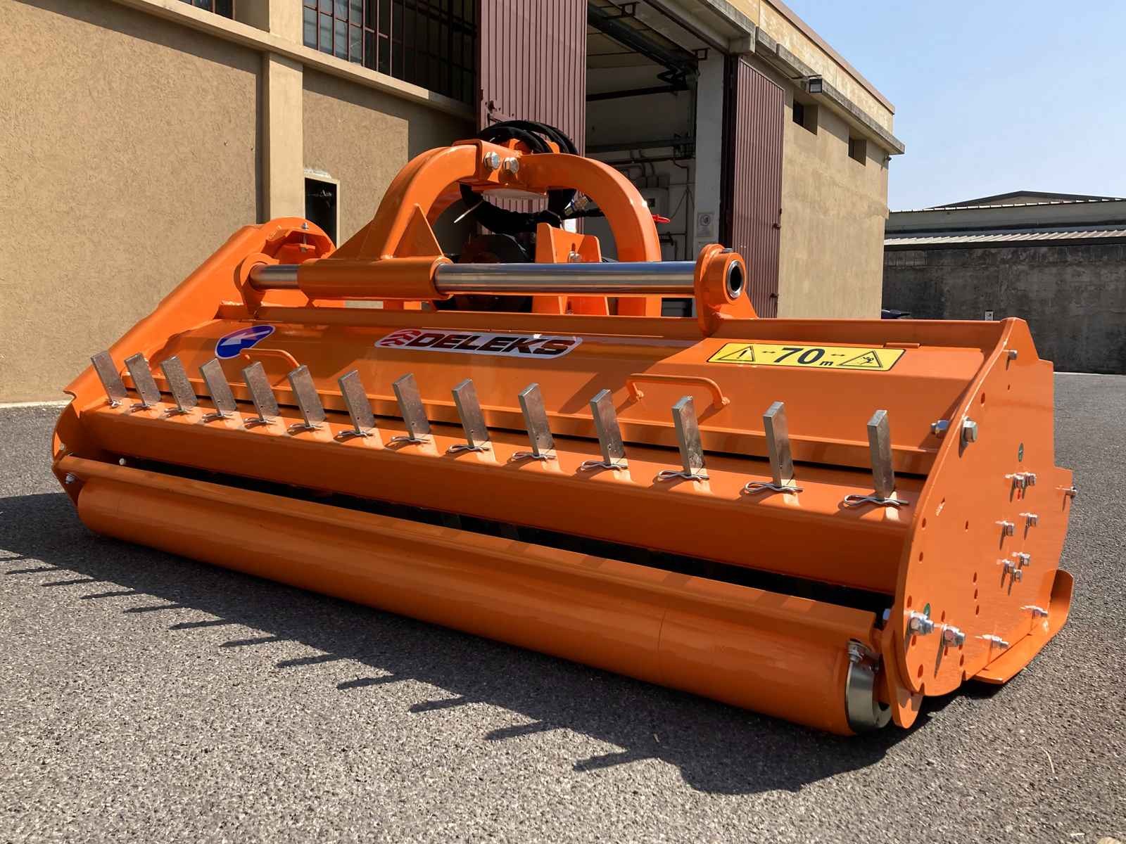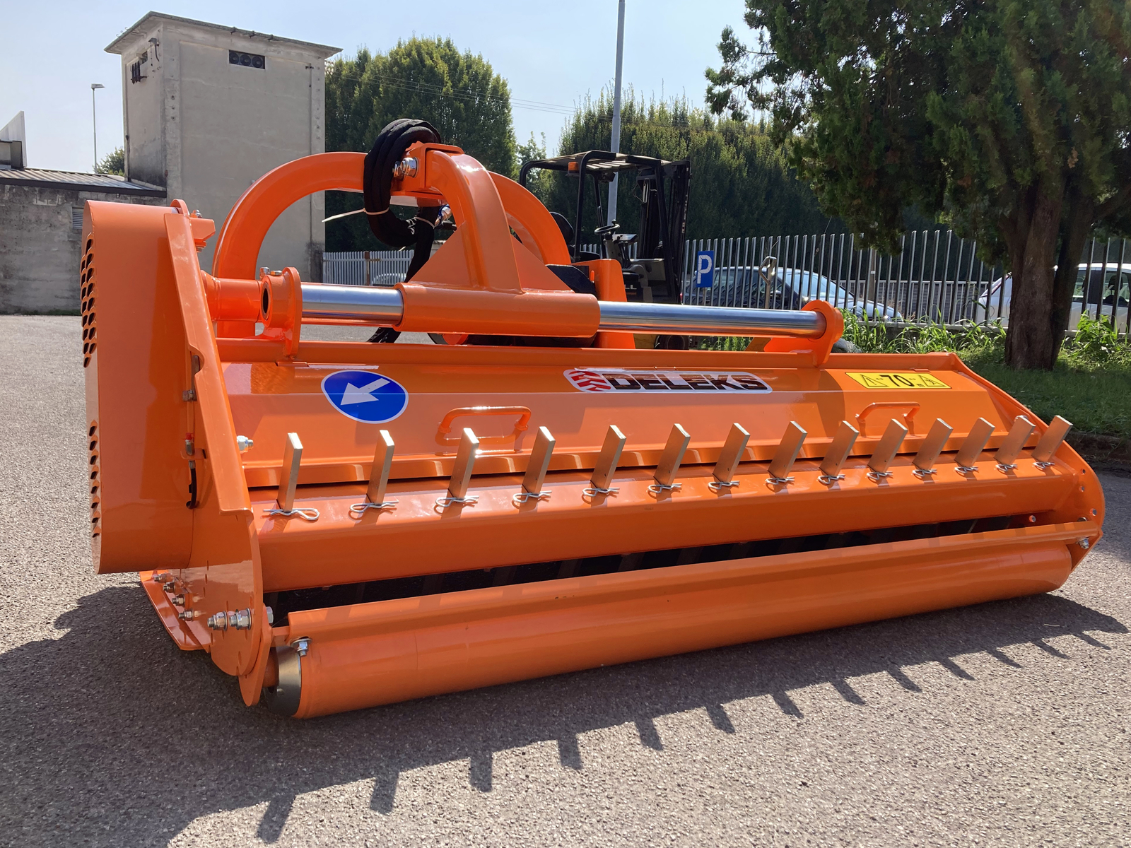 FERMERBroyeur déportable à marteaux DELEKS® TORO - 690kg. Série lourde pour tracteurs de type Same, Landini, Fiat, avec déport hydraulique et cardan CE avec boulon de sécurité.