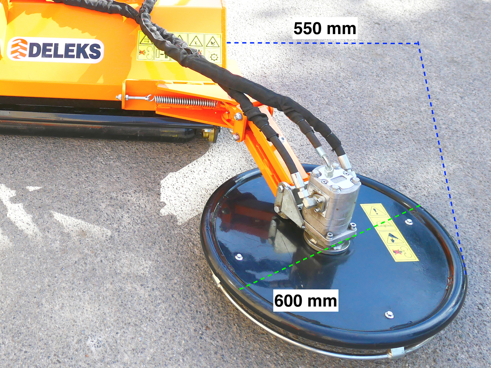Tête de broyage à lames, attelage direct au tracteur, entre rangées avec rentrée à ressort et disque Ø 600 mm, avec protection.