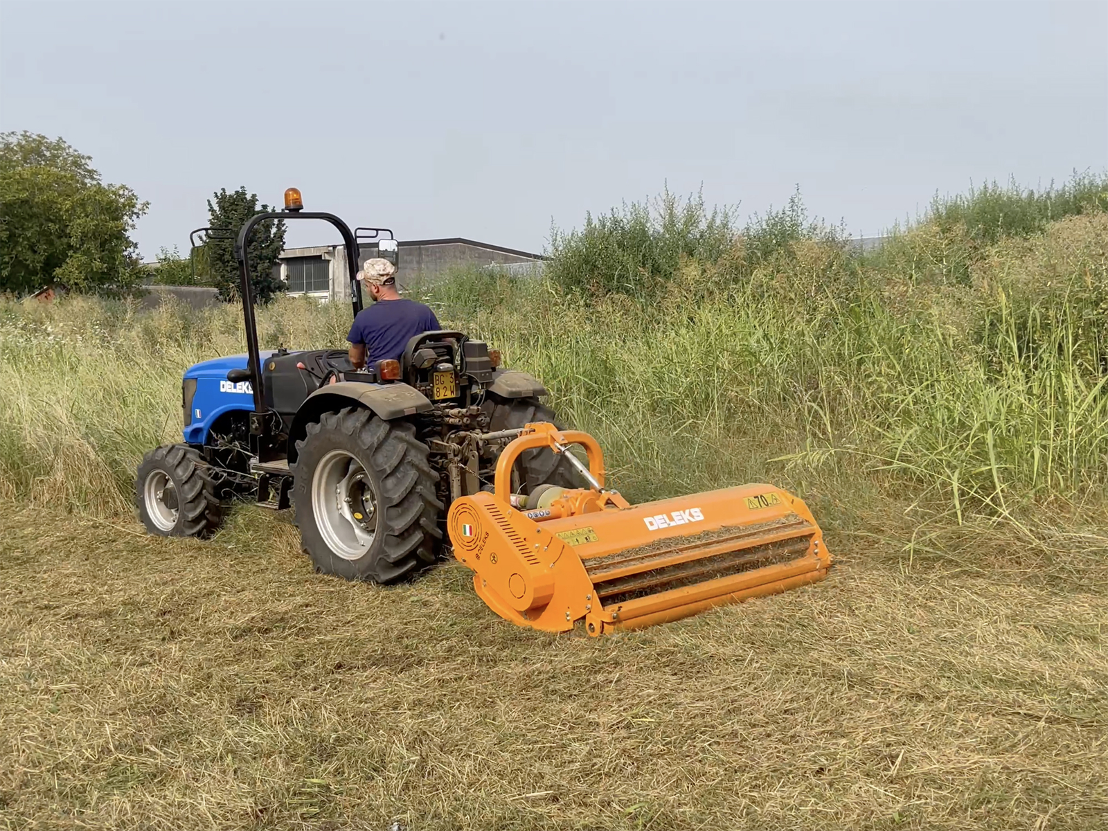 Spécifique pour les tracteurs à roues ou à chenilles, 60-120 cv, tels que New Holland, John Deere série 5, Landini Rex, Deutz-Fahr, Massey Ferguson, Lamborghini RF, Kubota, etc. Pour le travail sur des zones planes ou en pente. Attelage universel 3 points de catégorie 1-2.