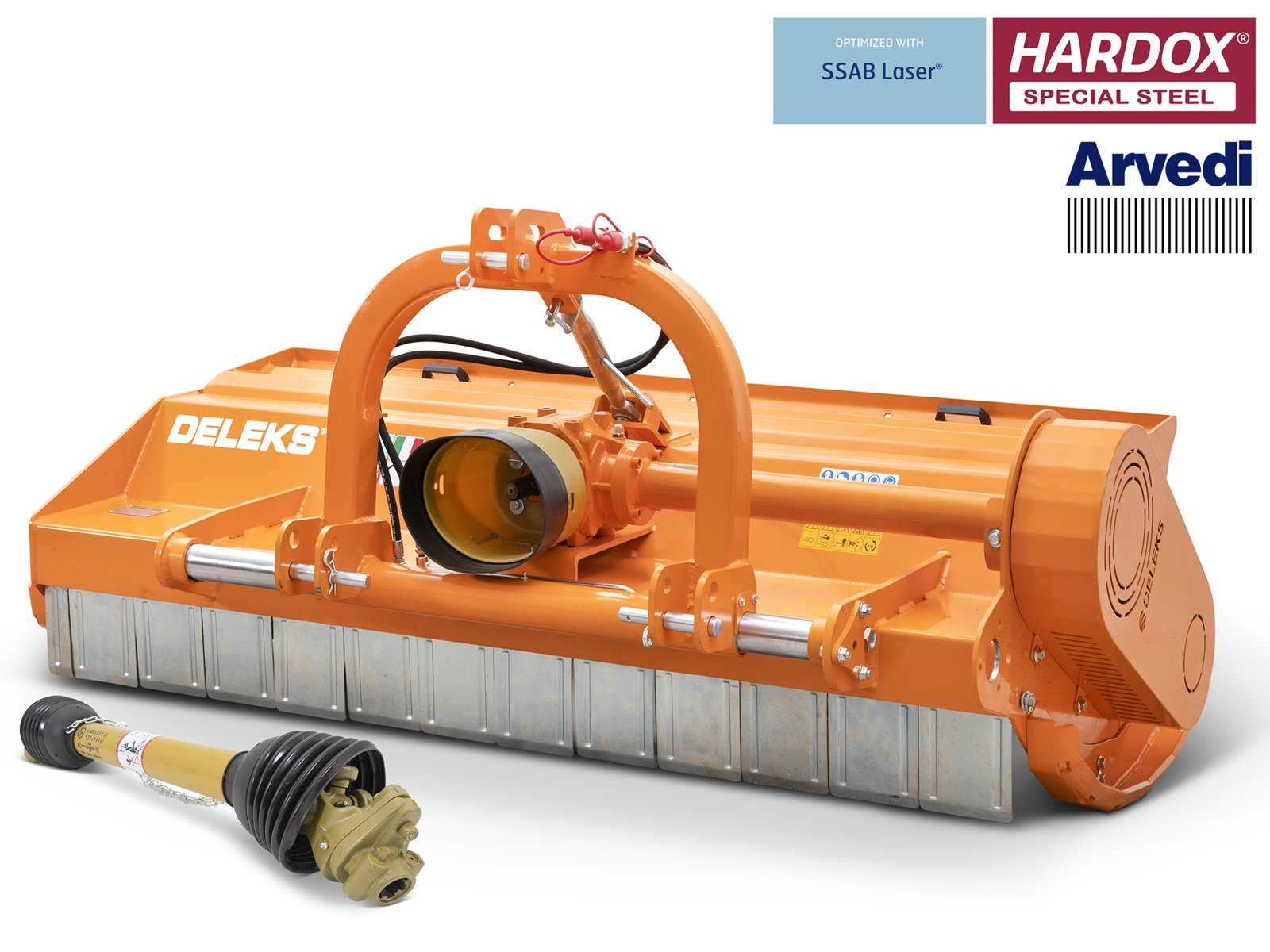 FERMERBroyeur professionnel déportable pour tracteur - Fabriqué en Italie - 165cm / 600kg - GEPARD-170 DELEKS® - Cardan avec boulon de sécurité.