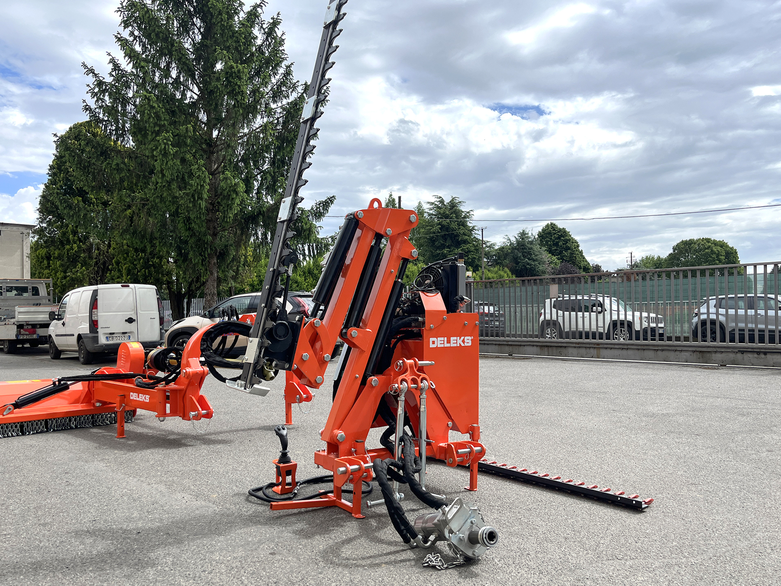 Decespugliatore idraulico portato a due bracci - DELEKS® MERLO, può montare una testata trinciante da 80-100-110cm di taglio, oppure una barra tosasiepi da 130-160 o 180cm - Joystick - Pompa pto inclusa.