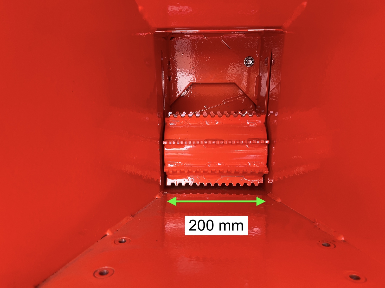 La transmission au rouleau d’alimentation est assurée par courroies, permettant une vitesse d’introduction constante du matériau vers les couteaux et une granulométrie homogène du broyat.
