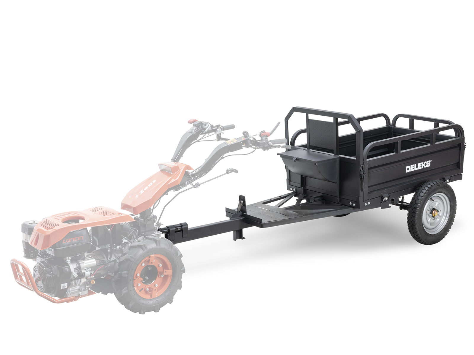 Rimorchio ribaltabile DELEKS® per motocoltivatore. Compatibile con motocoltivatori BCS, Ferrari e Pasquali.