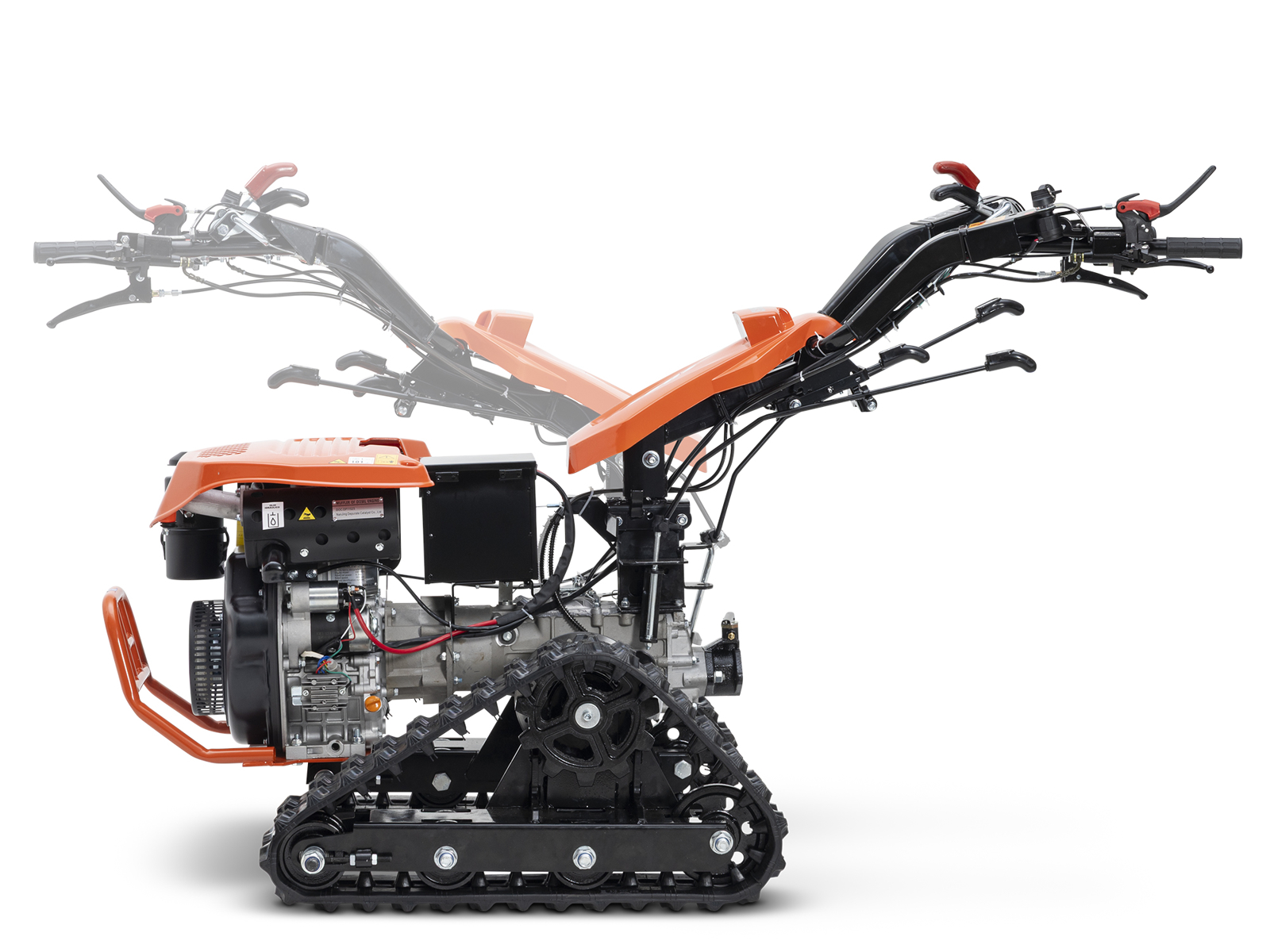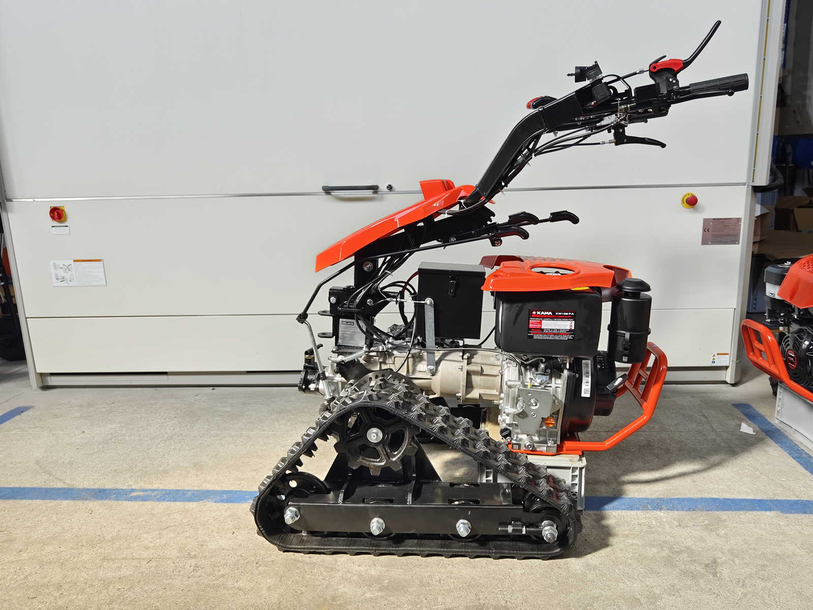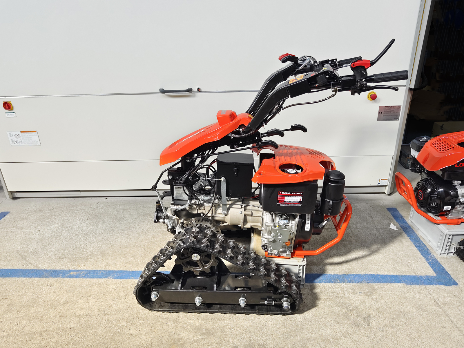 CHIUDIMotocoltivatore ZEUS DELEKS® cingolato, reversibile e multi-attrezzo, motore Kama diesel, cambio 3+2 con inversore rapido, blocco differenziale, attacco rapido (femmina) incluso.
