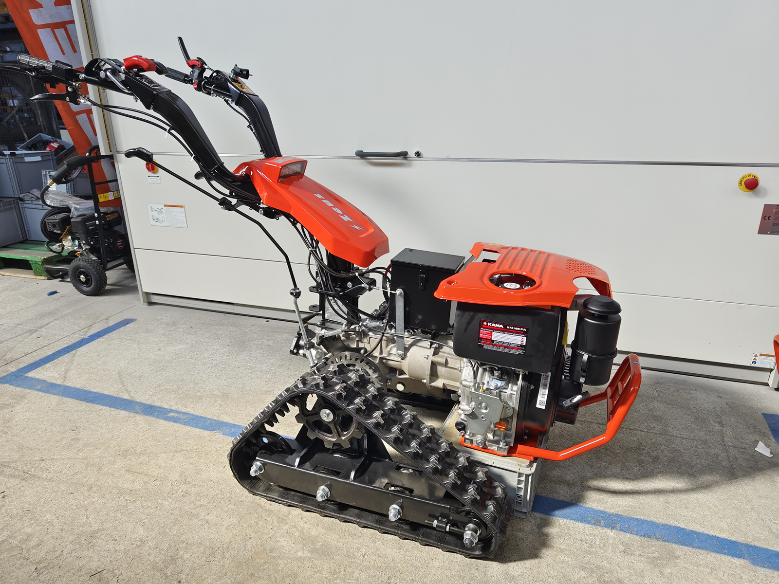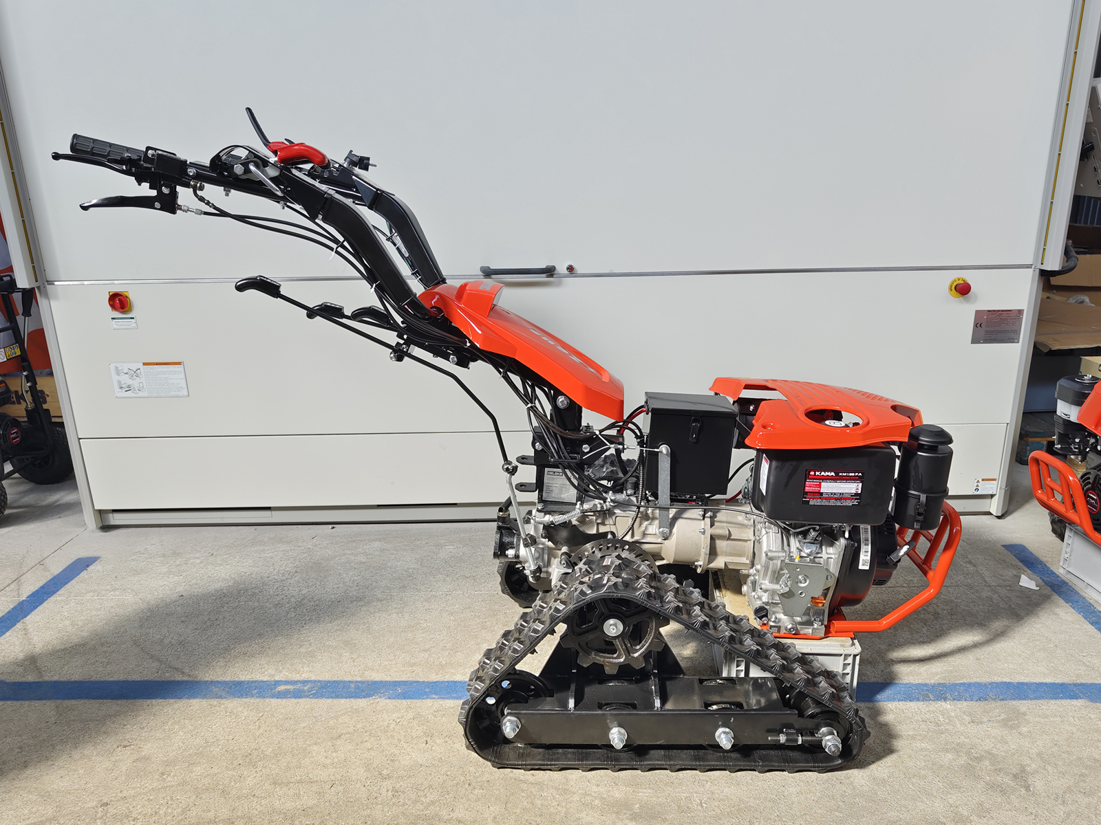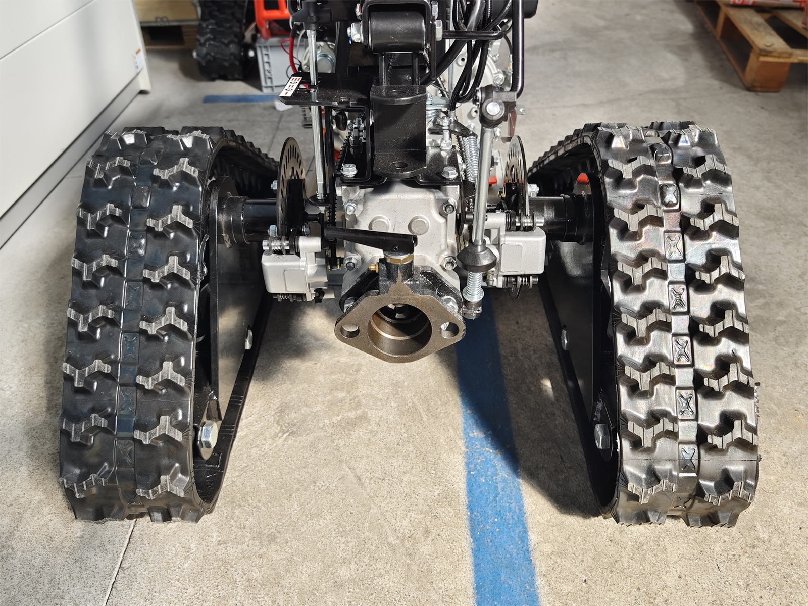 CHIUDIMotocoltivatore ZEUS DELEKS® cingolato, reversibile e multi-attrezzo, motore Kama diesel, cambio 3+2 con inversore rapido, blocco differenziale, attacco rapido (femmina) incluso.