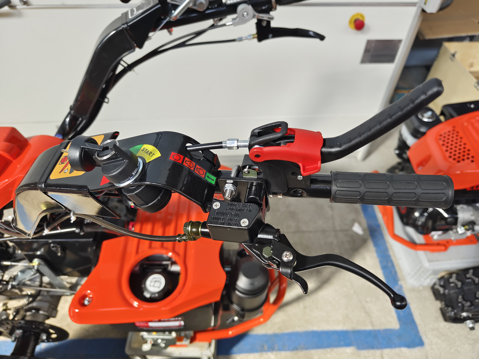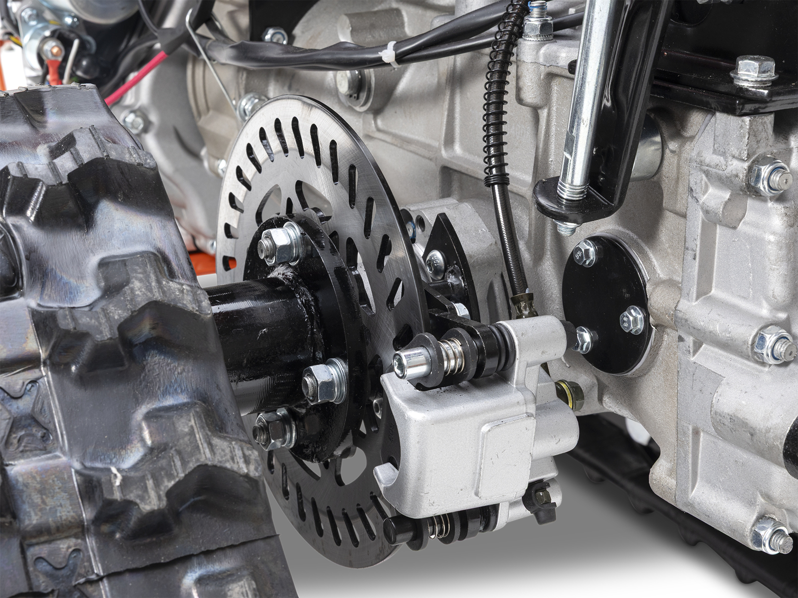 Differenziale e Blocco differenziale: il differenziale consente una maggior manovrabilità, il bloccaggio differenziale, che si inserisce tramite l’apposita leva sul manubrio, permette una maggior aderenza al terreno anche in pendenza e un avanzamento rettilineo senza difficoltà.