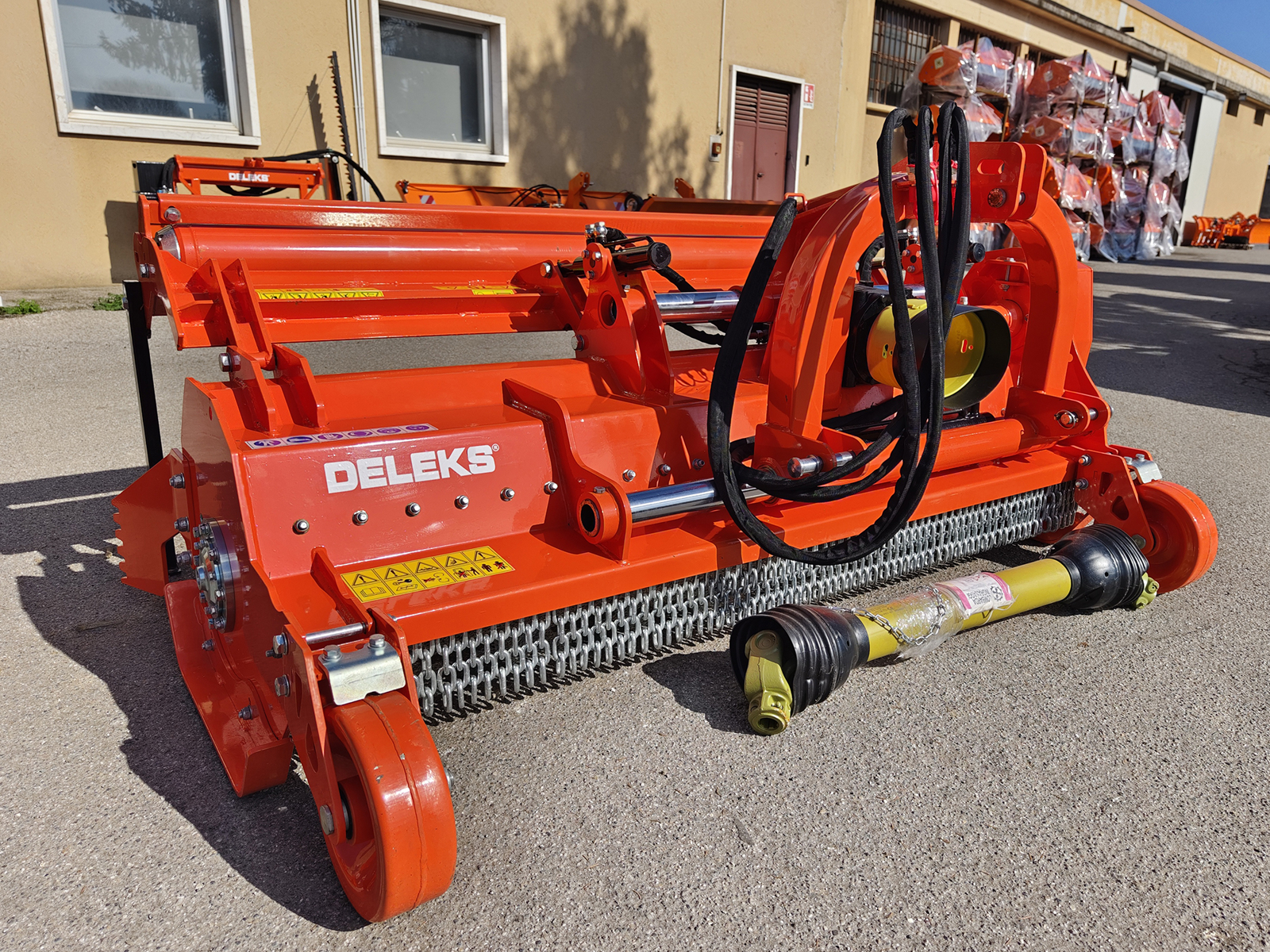 CHIUDITrinciasarmenti serie pesante DELEKS® GORILLA-200 ideale per la trinciatura su residui di potatura di vigneto, frutteto, oliveto e materiale legnoso boschivo fino a Ø 15 cm. Spostamento idraulico e cardano con bullone di sicurezza.