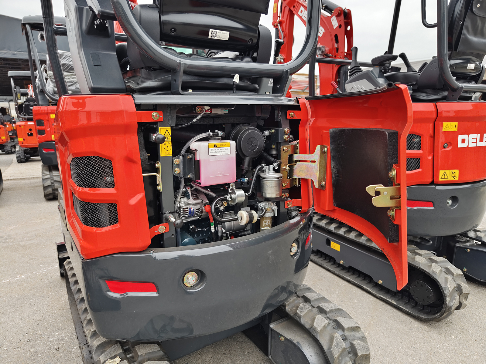 Il miniescavatore cingolato DELEKS® S180 girosagoma da 18 Q.li è equipaggiato con motore Kubota D902 a 3 cilindri, sistema idraulico a pistone assiale a cilindrata variabile (64,4 L/min), carro allargabile, braccio orientabile e doppia velocità. Progettato per garantire potenza, precisione e controllo idraulico professionale, si distingue per efficienza, silenziosità e movimenti fluidi: ideale per cantieri edili, manutenzione urbana, paesaggistica e lavori in spazi ristretti grazie al design girosagoma.