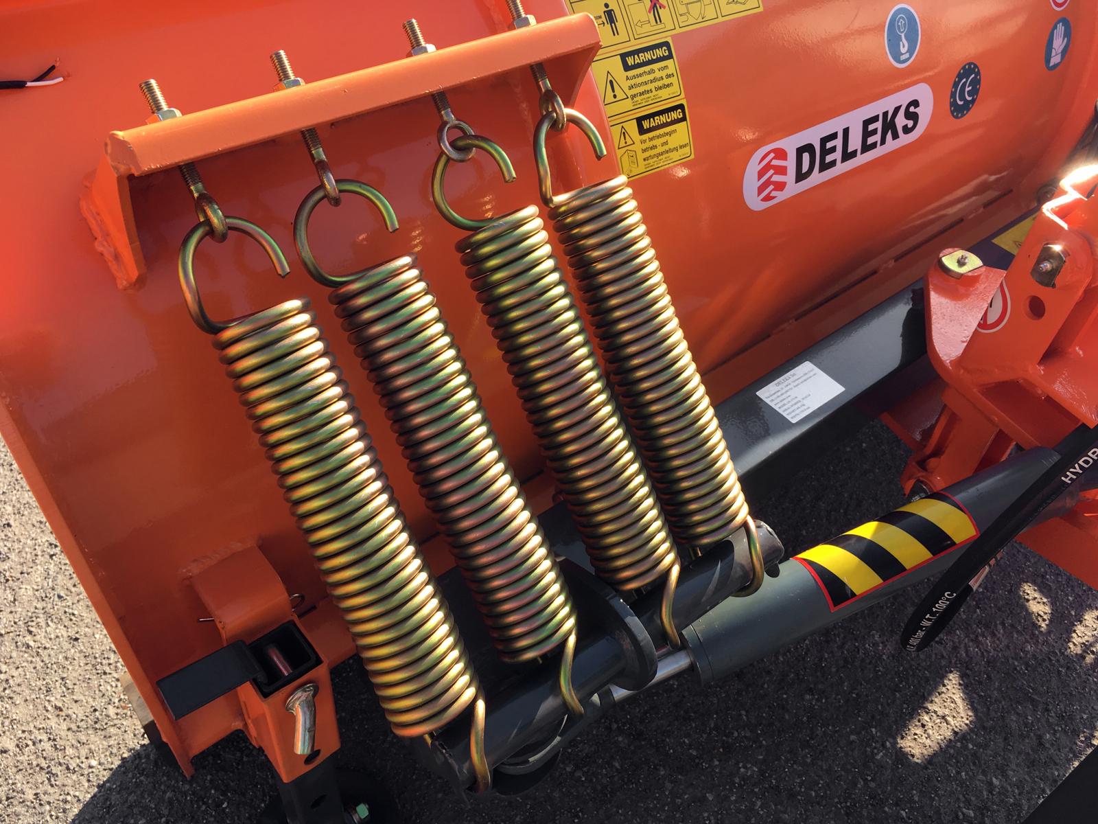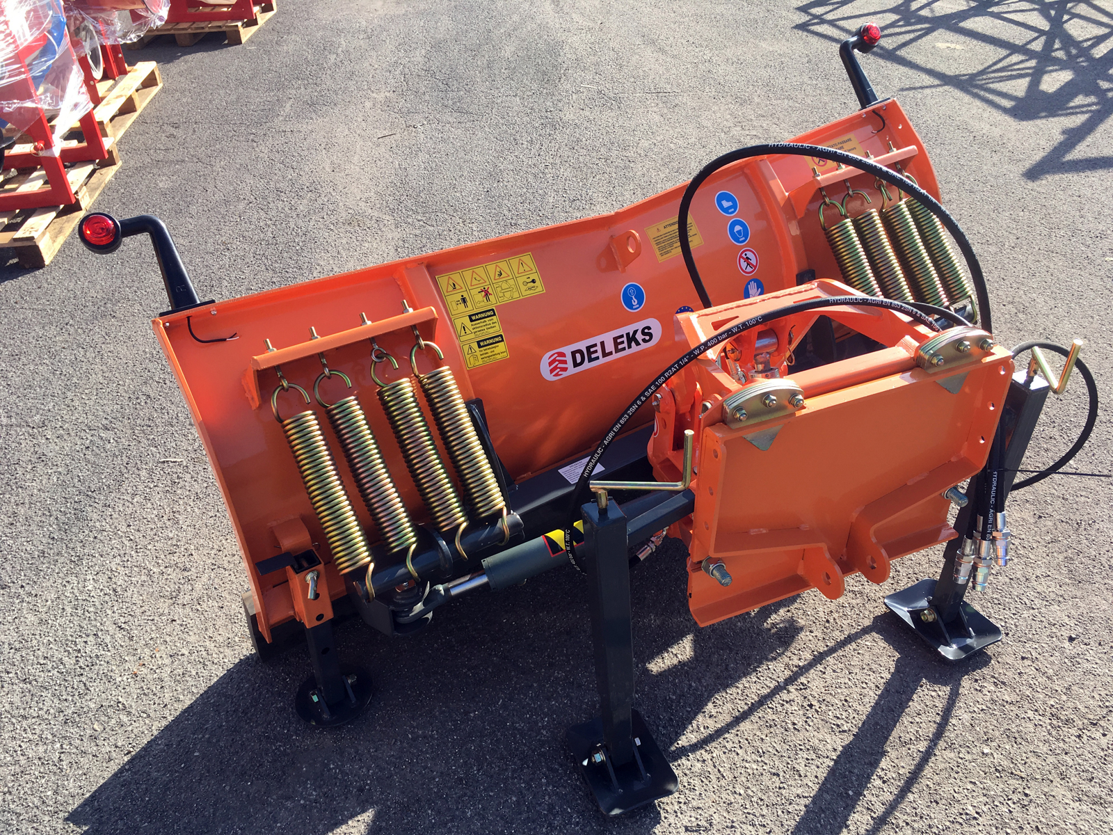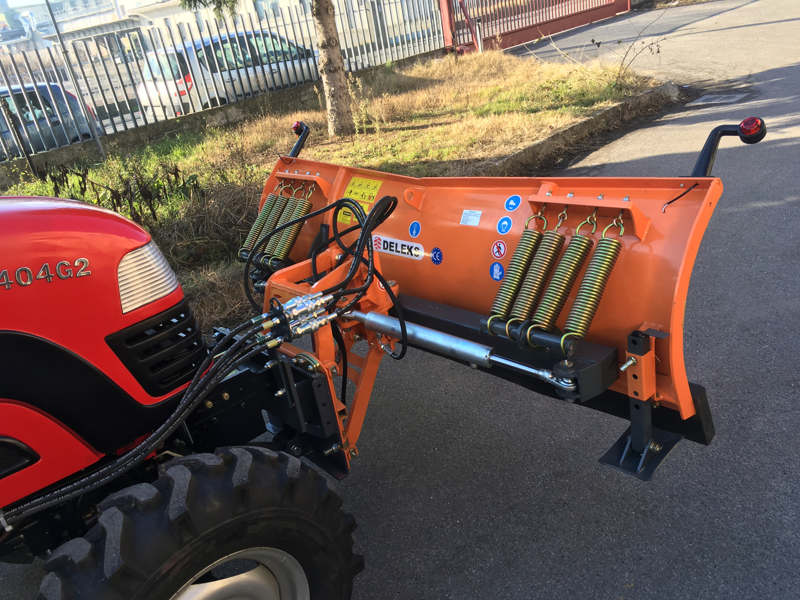 Lama da neve frontale 175cm a piastra DELEKS® per trattori da frutteto o Caron - Omologata per uso su strada - Sollevamento e orientamento idraulico, lama in acciaio o gomma.