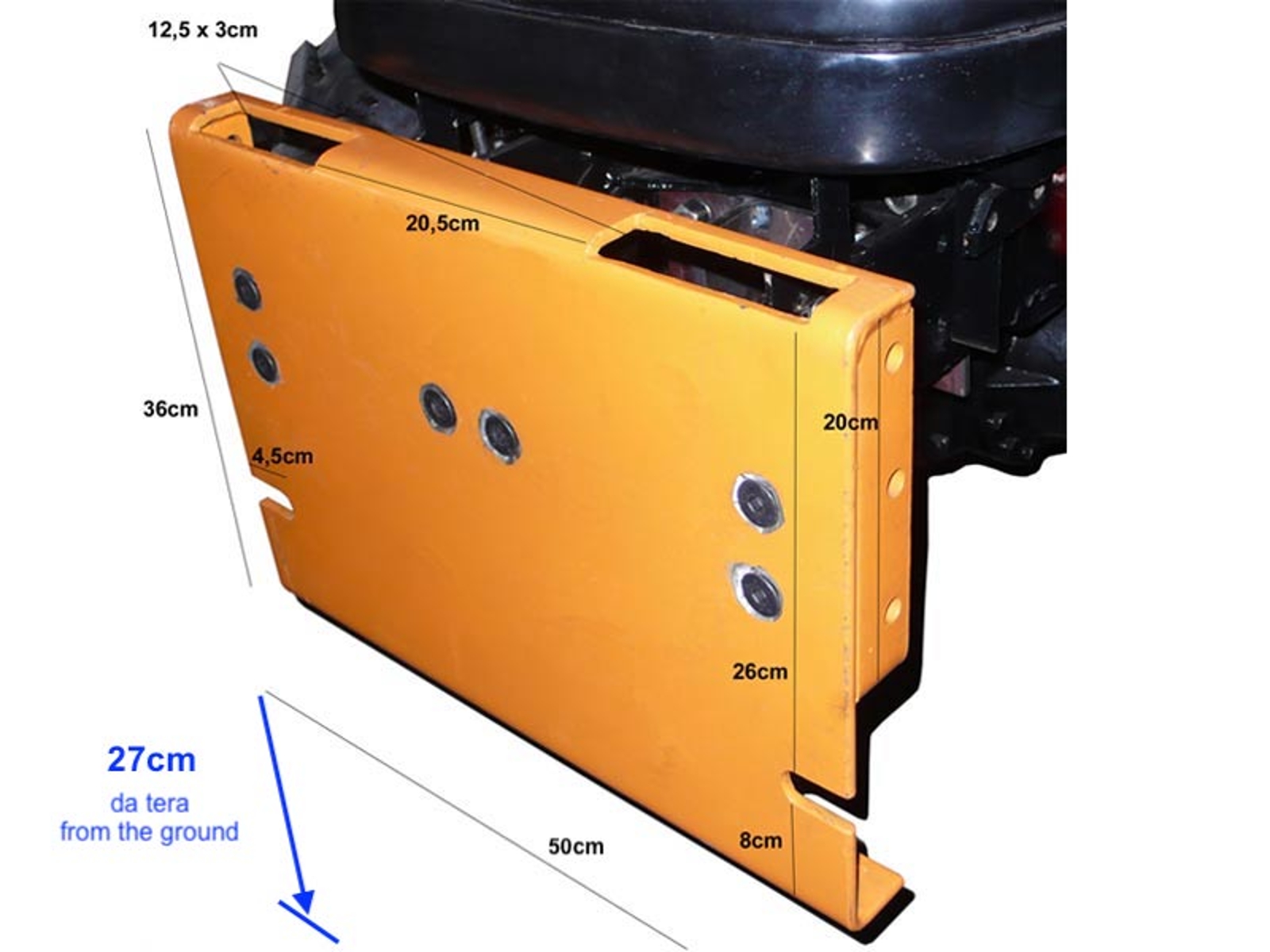 Compatibile con tutti i trattori frutteto (no campo aperto), come Lamborghini Ego, Landini Mistral, Kubota L, BCS, Goldoni Star, Antonio Carraro Tigre, Same Delfino, New Holland T3F, John Deere Serie 3. O autocarri 4x4 come Caron, Bonetti, Bremach. Conforme alla direttiva CE macchine. Garanzia 2 anni.