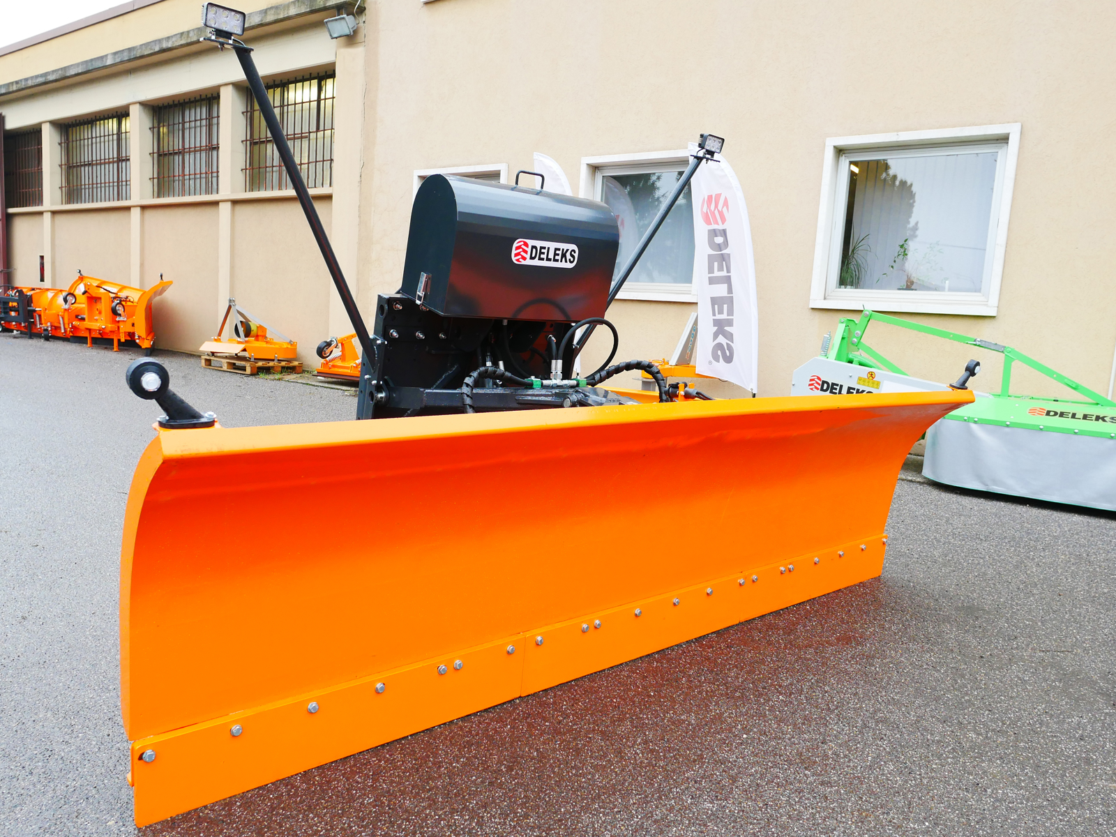 Lama da neve 2,6m / 490kg - DELEKS®- Attacco a piastra per Trattore Agricolo - orientamento e sollevamento idraulico - 3 settori acciaio o gomma.