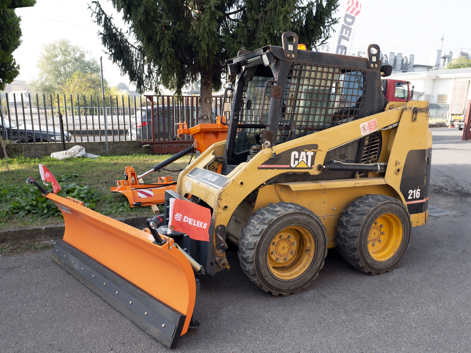CHIUDILama sgombraneve DELEKS® con attacco universale per Minipale max 30Qli tipo Bobcat, JCB, ecc.. - larghezza 220cm - orientamento idraulico - lama acciaio o gomma.