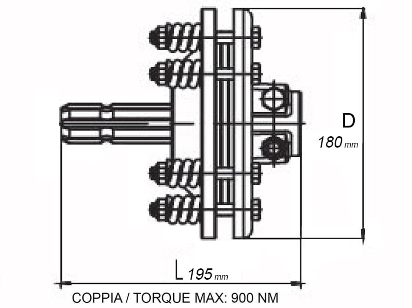 Limita la coppia trasmissibile al valore di taratura; tale coppia continua ad essere trasmessa per tutta la durata dell'intervento. Non comporta la sospensione del lavoro. E’ possibile regolare la taratura intervenendo sulle molle. Va montato lato macchina operatrice.