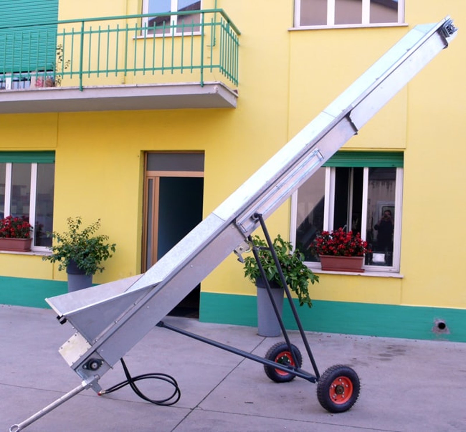 Nastro trasporta legna idraulico DELEKS per trattore - Rampa 5,00m - Motore idraulico per presa di forza - nastro in PVC.