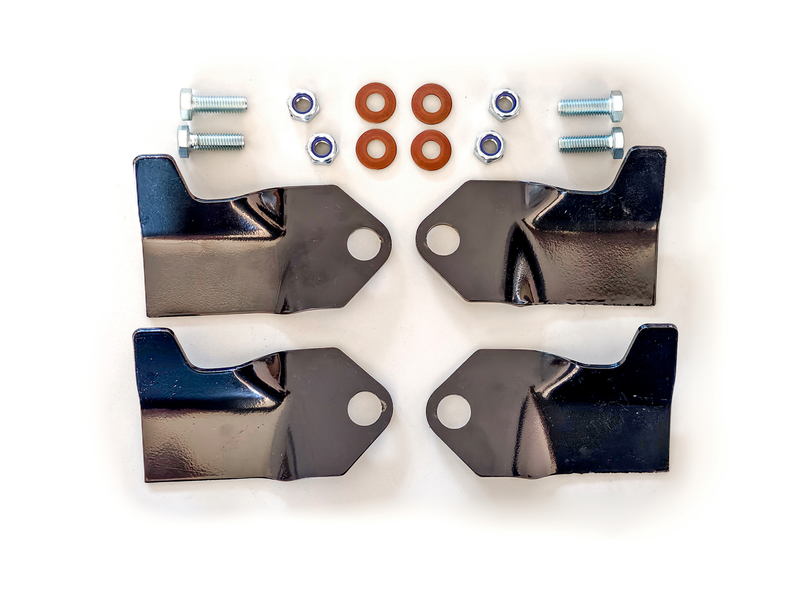4 lame di ricambio per piatto tagliaerba RM-100, compresi dadi e bulloni.