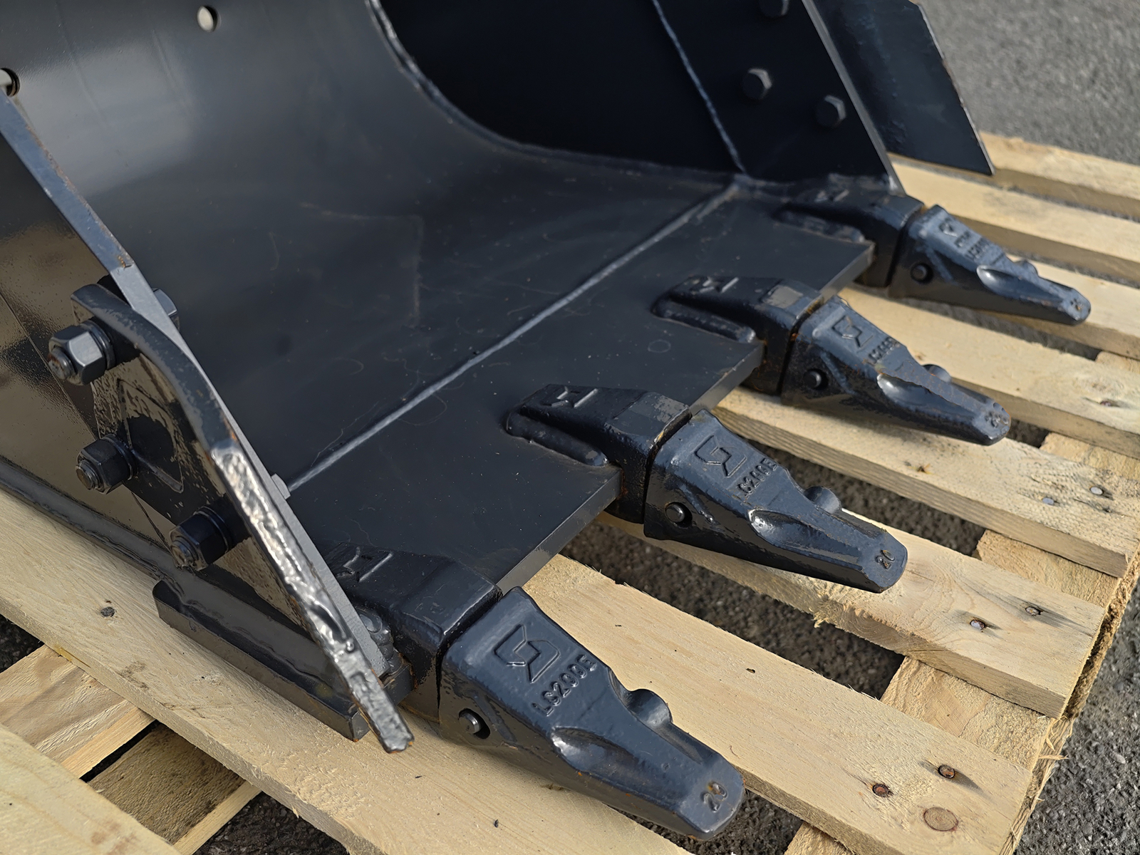 La benna è equipaggiata con 4 denti intercambiabili, progettati per distribuire meglio il carico, migliorare la trazione sul terreno e garantire una maggiore durata in condizioni di lavoro gravose.