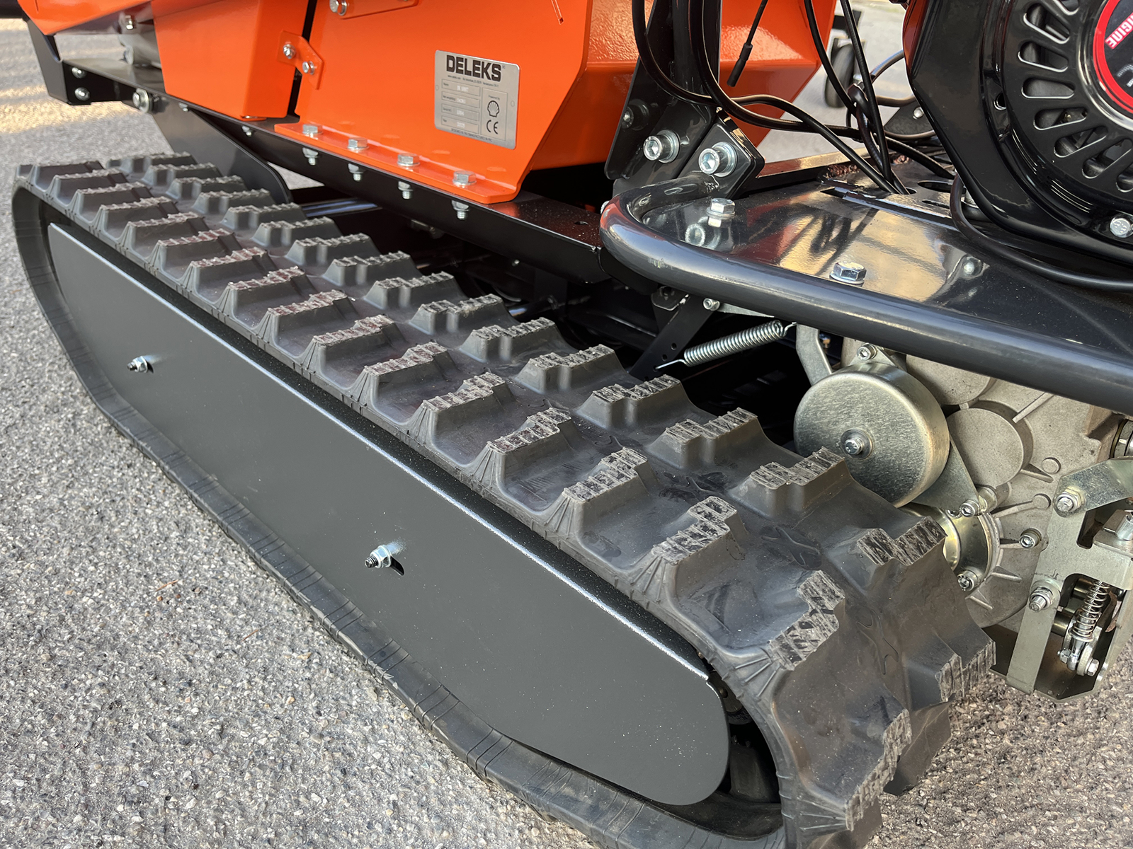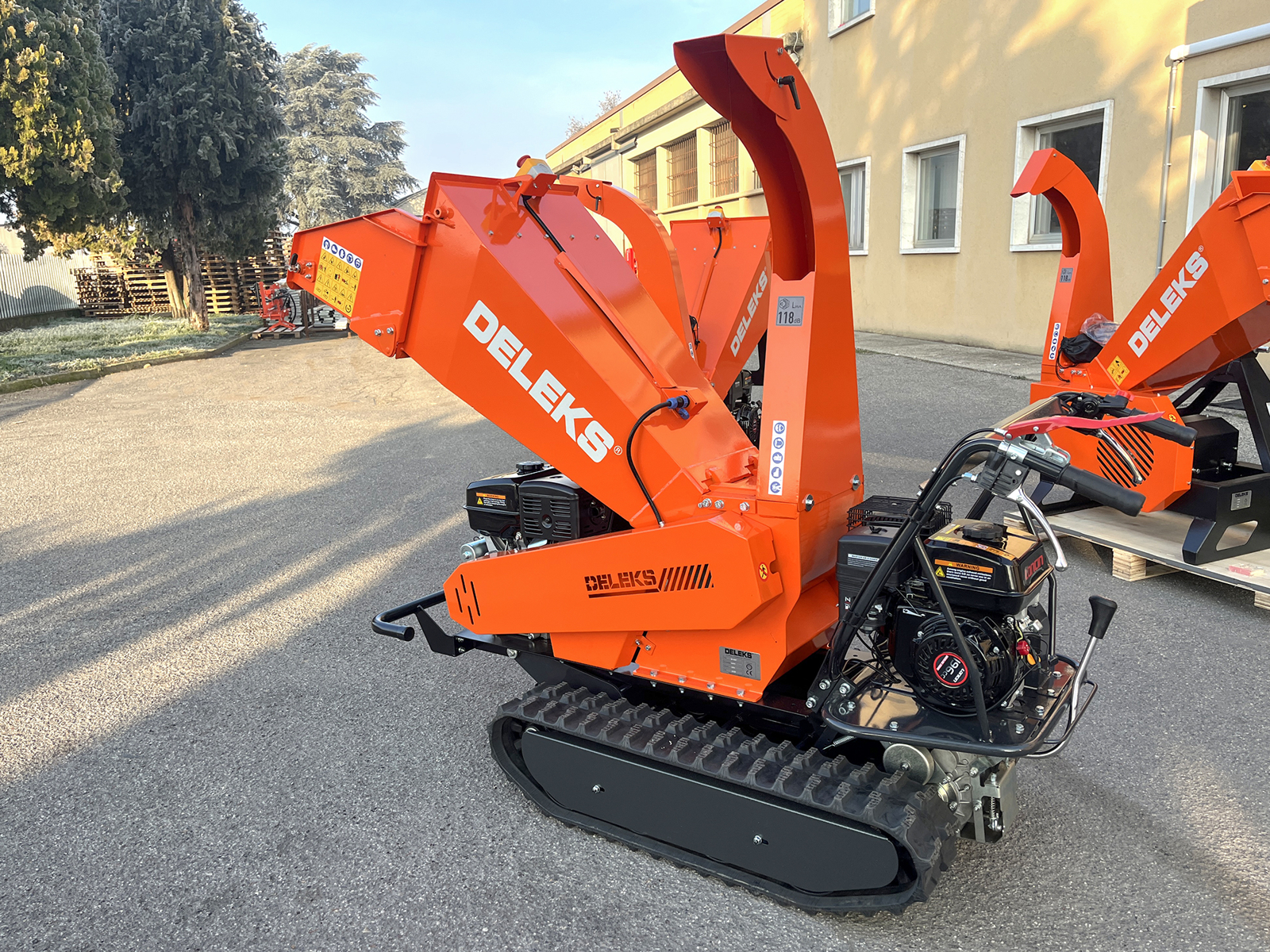 Il biotrituratore cingolato DK1000T abbina un sistema di cippatura professionale a una base cingolata autonoma, offrendo una soluzione efficace per lavorare in aree difficilmente accessibili, pendii, terreni irregolari o fangosi. A differenza di altri biotrituratori cingolati o biocippatori su motocarriola cingolata della stessa categoria, questo modello mantiene entrambi i motori in posizione ribassata, migliorando sensibilmente la stabilità complessiva della macchina.