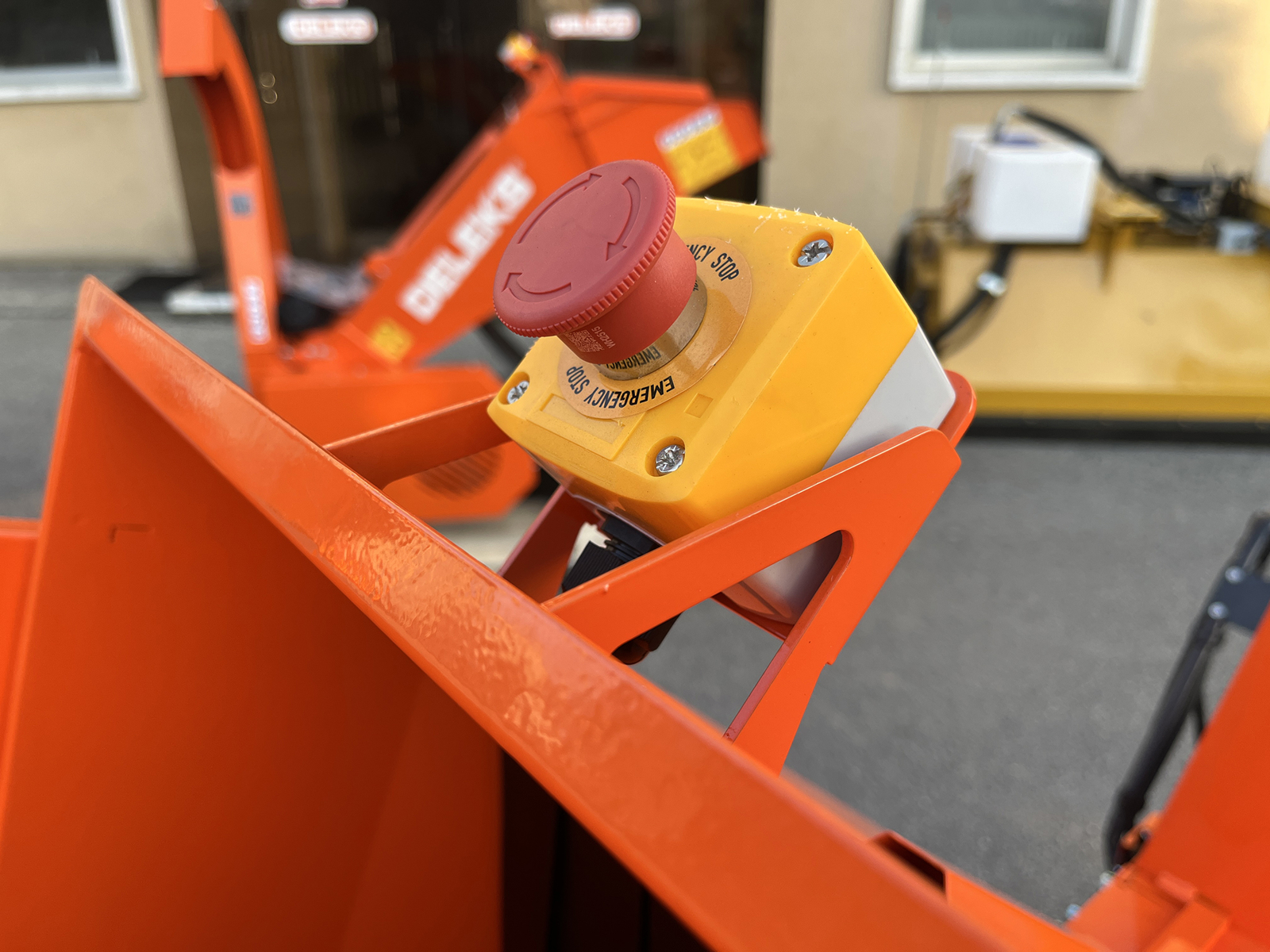 Il biotrituratore è dotato di dispositivo di arresto di emergenza a fungo, che consente l’arresto immediato del sistema di taglio in caso di necessità. La tramoggia di alimentazione può essere richiusa, evitando che il gruppo di taglio rimanga esposto quando la macchina è parcheggiata o durante il trasporto. Tutte le protezioni sono progettate per garantire un utilizzo conforme alle normative vigenti.