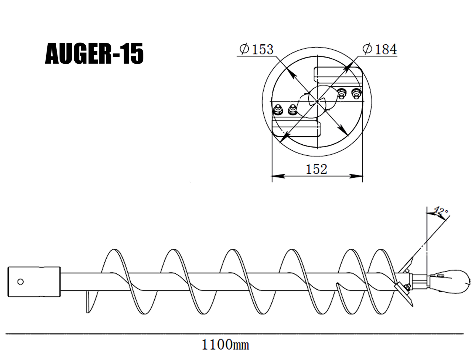 Bohrspitze mit 15 cm Durchmesser und Bohrschneiden für Erdbohrer:
