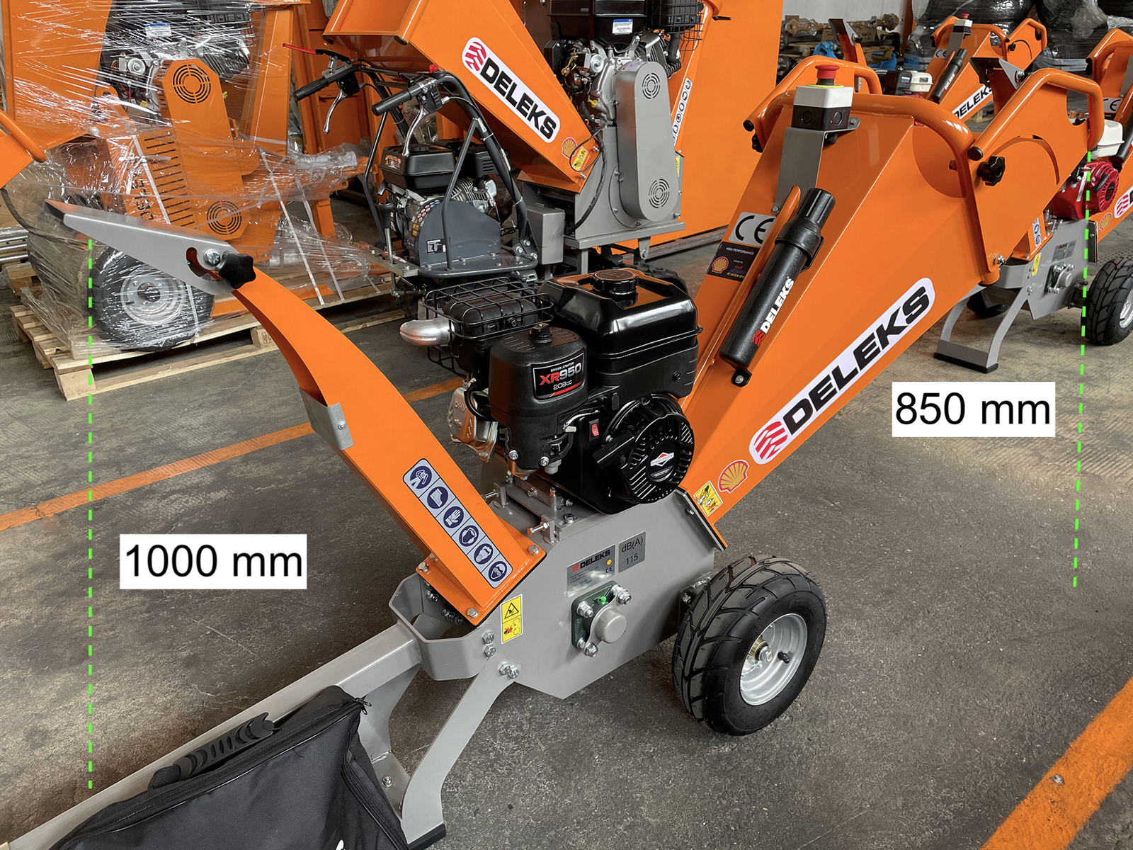 DELEKS® DK-500-BS Biotrituratore con motore indipendente Briggs&Stratton XR950 - 208cc - 6.5cv a benzina, 4 tempi, Sistema di cippatura a tamburo  con 2 coltelli orizzontali + controcoltello fisso.  Adatto alla cippatura di tutti i tipi di legno secco e verde, residui di potatura ecc.