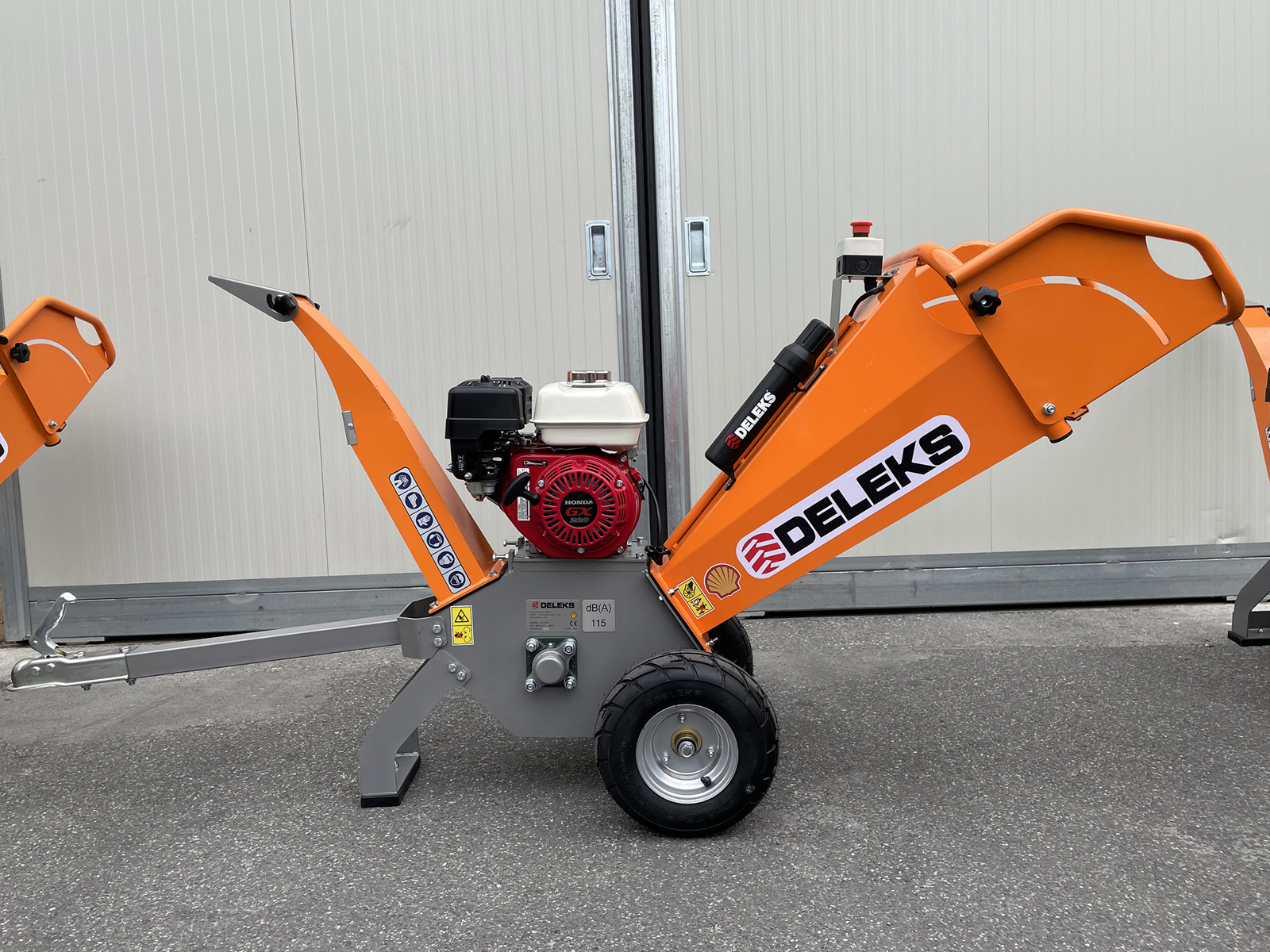 DELEKS® DK-500-HONDA Biotrituratore con motore indipendente HONDA GX200 - 196cc - 6.0cv a benzina, 4 tempi, Sistema di cippatura a tamburo con 2 coltelli orizzontali + controcoltello fisso. Adatto alla cippatura di tutti i tipi di legno secco e verde, residui di potatura ecc.