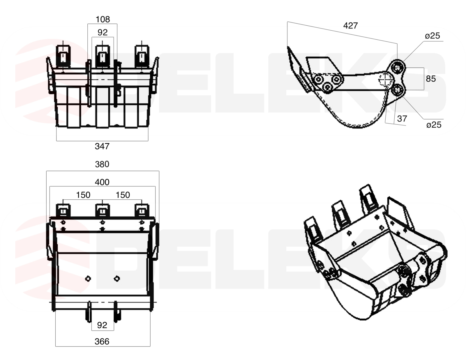Benna per miniescavatore M80/M90/M100/M120 - 38cm